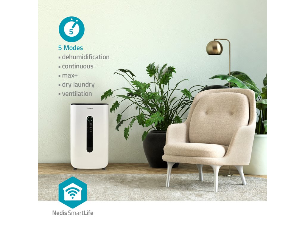 Nedis® SmartLife™ odvlhčovač vzduchu dokáže pojmout až 20 litrů* vlhkosti ze vzduchu za den. Je to tedy nejlepší způsob předcházení vzniku plísní a vlhkosti ve Vaší domácnosti.
