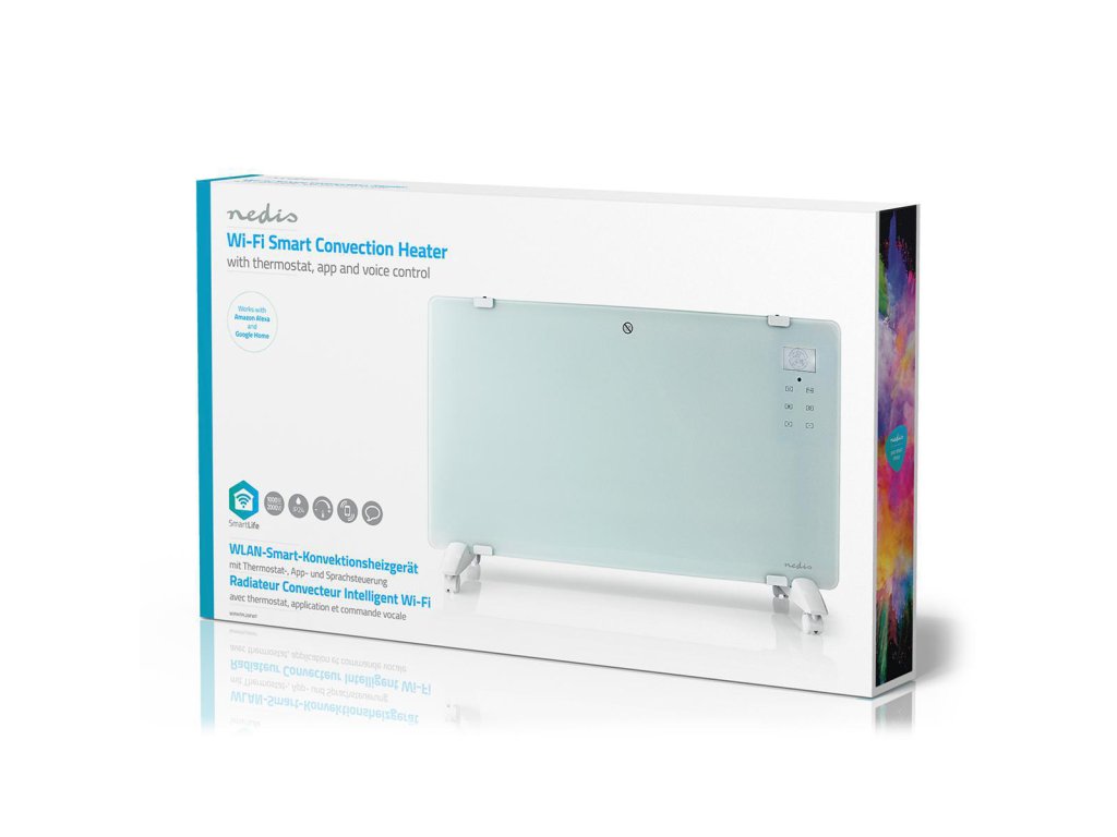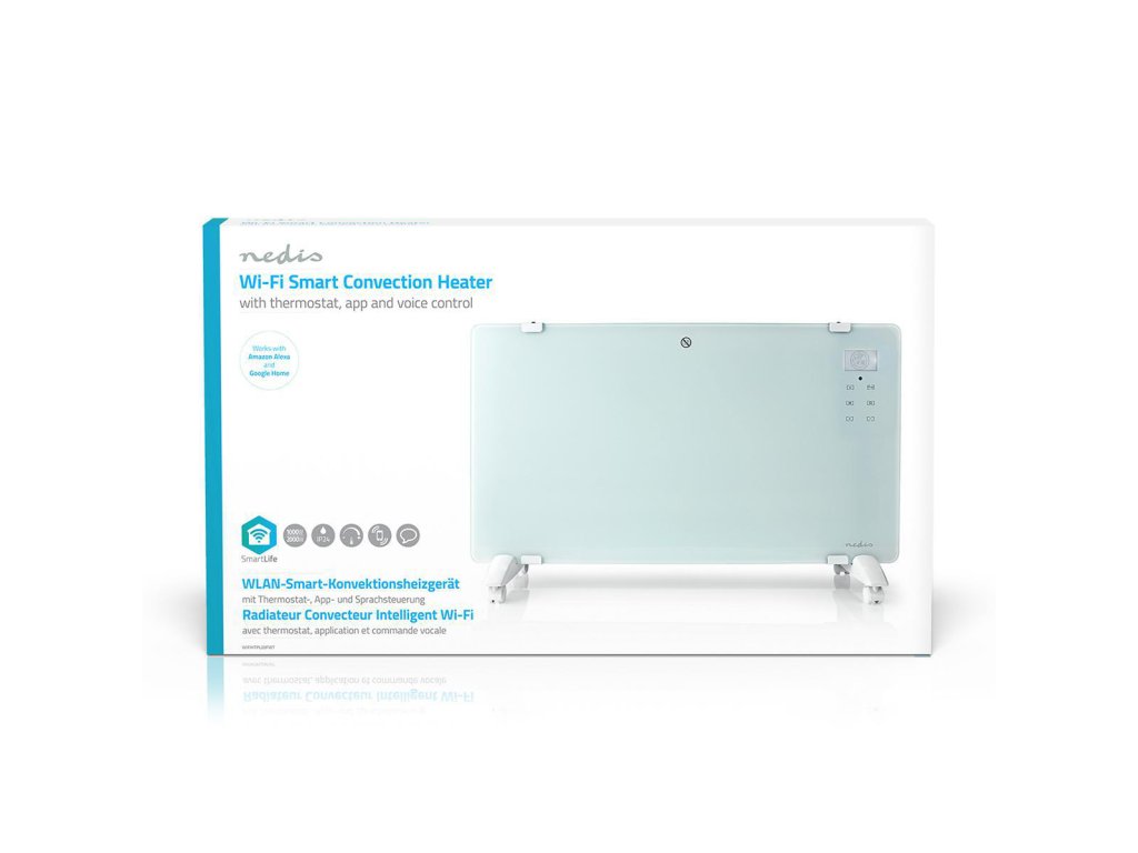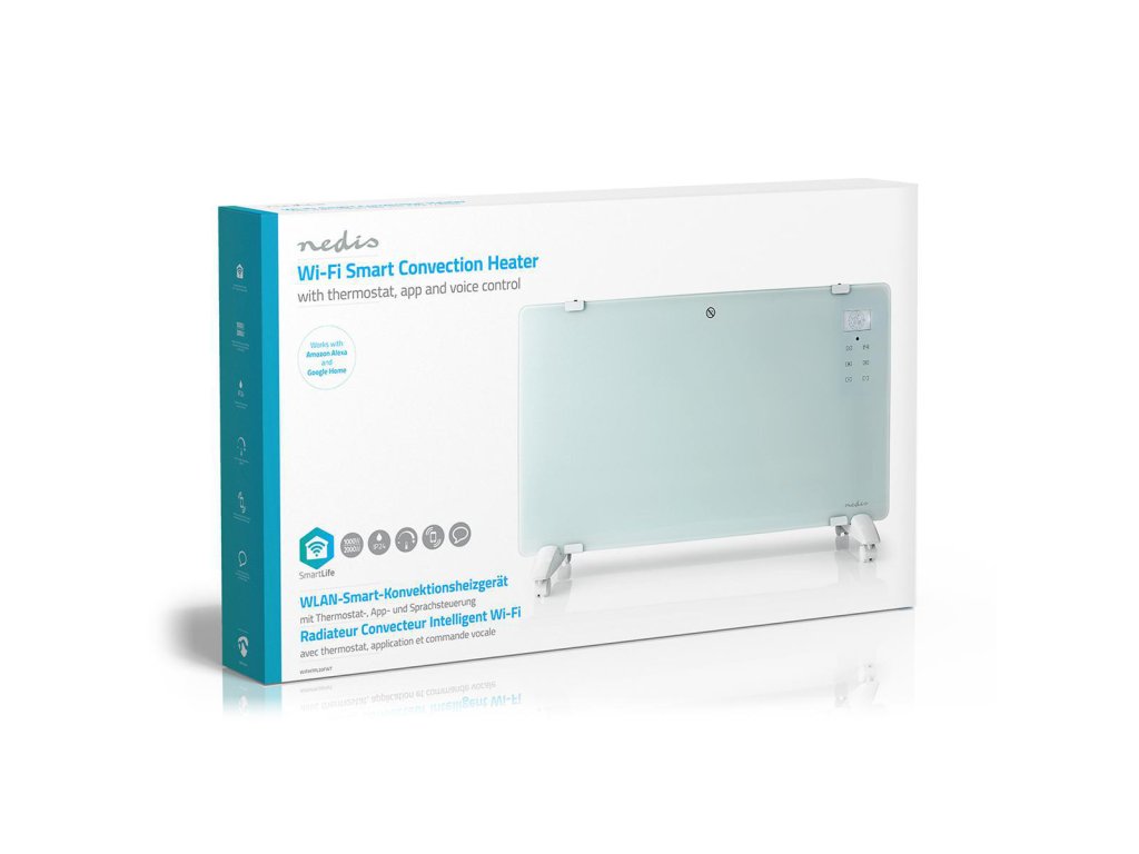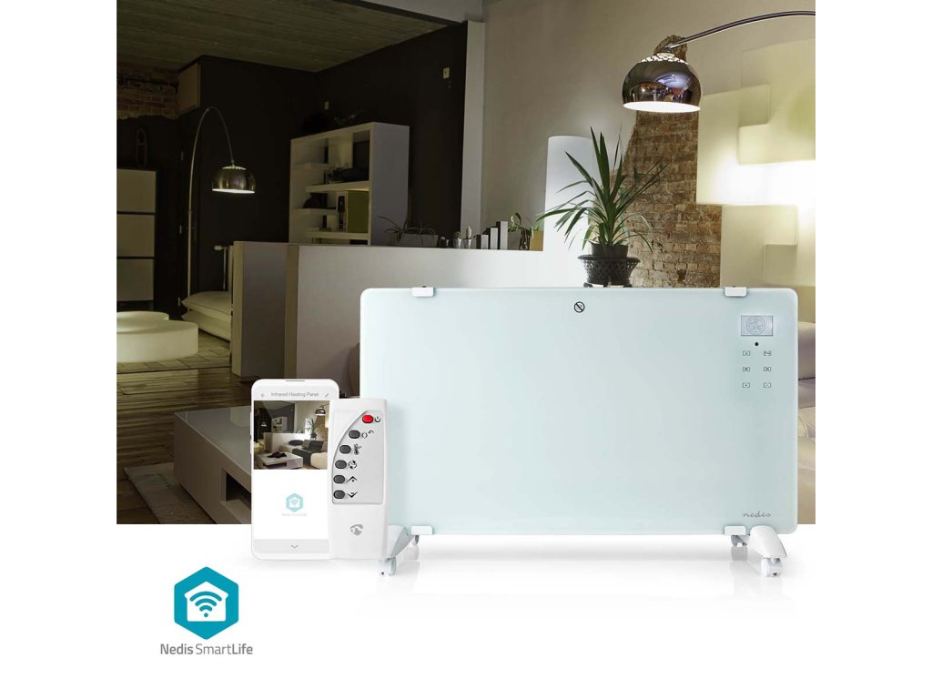 Nedis SmartLife chytrý WiFi skleněný konvekční přímotop, LCD displej, 2000 W, bílá