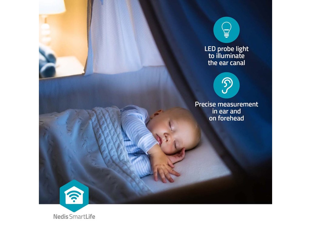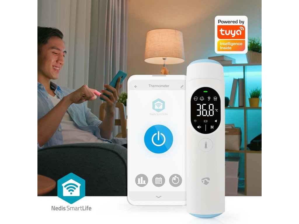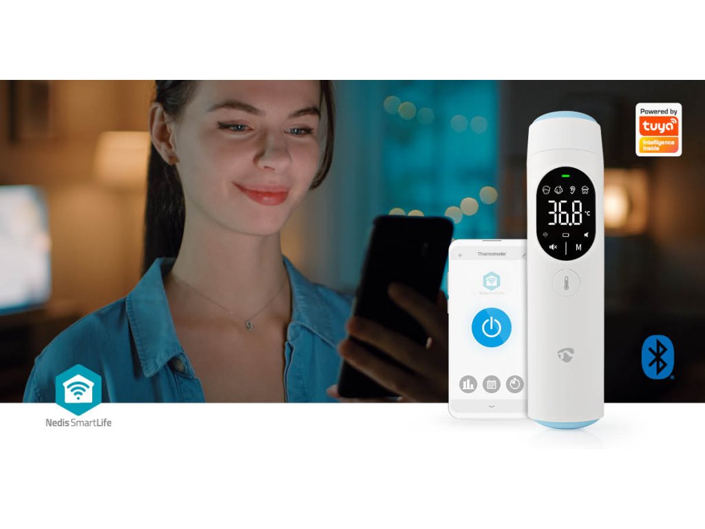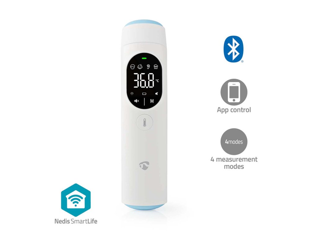 S tímto multifunkčním infračerveným Bluetooth® teploměrem SmartLife od společnosti Nedis můžete měřit tělesnou teplotu rychle a snadno. Teploměr měří tělesnou teplotu přes čelo nebo ucho.