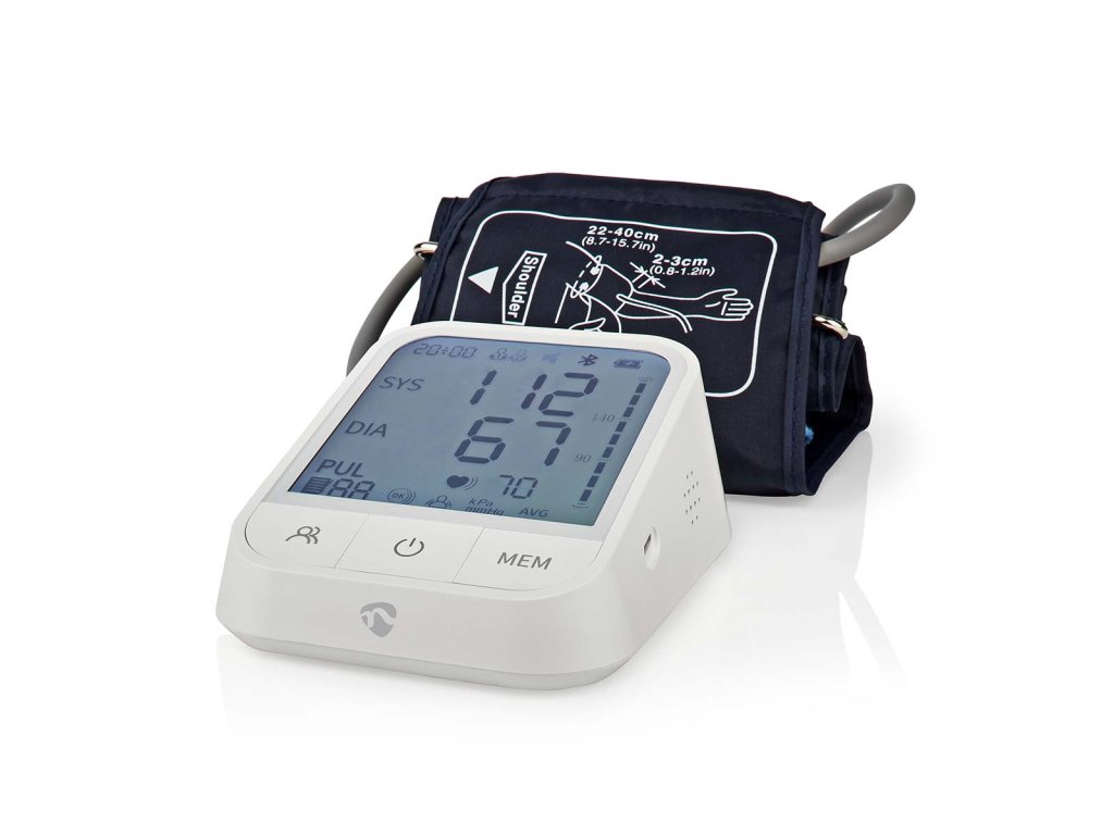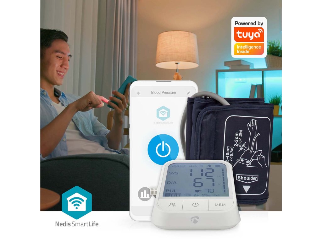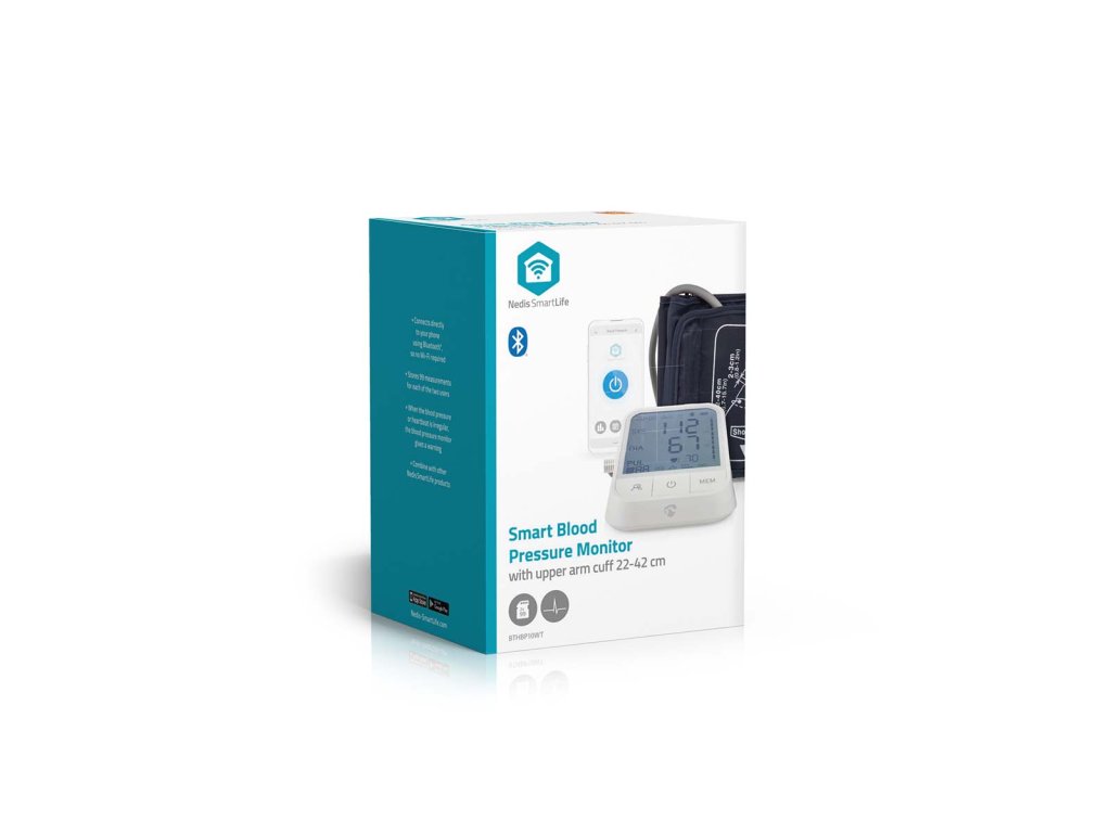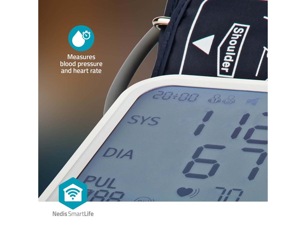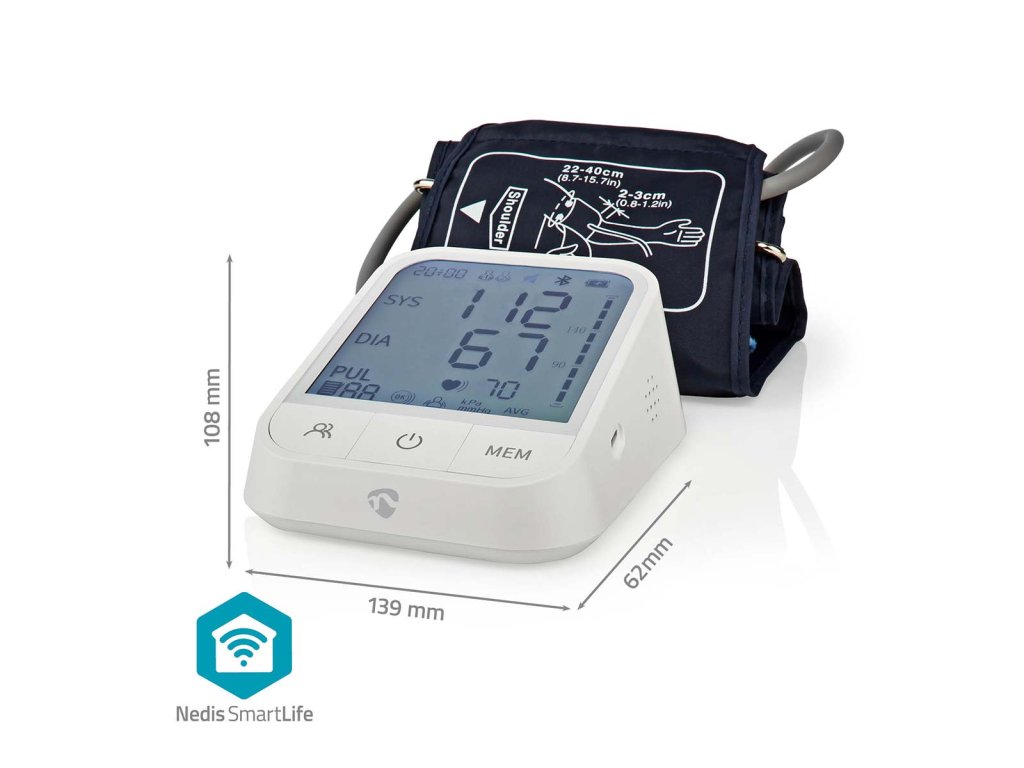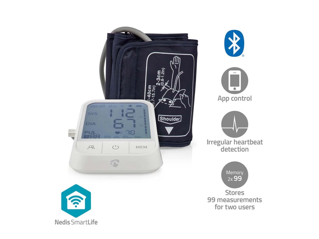 Nedis SmartLife Monitor Krevního Tlaku | Rameno | Bluetooth | LCD Displej | 22 - 42 cm | Detekce nepravidelného srdečního tepu / Detekce nošení manžety / Indikace klidu | Bílá