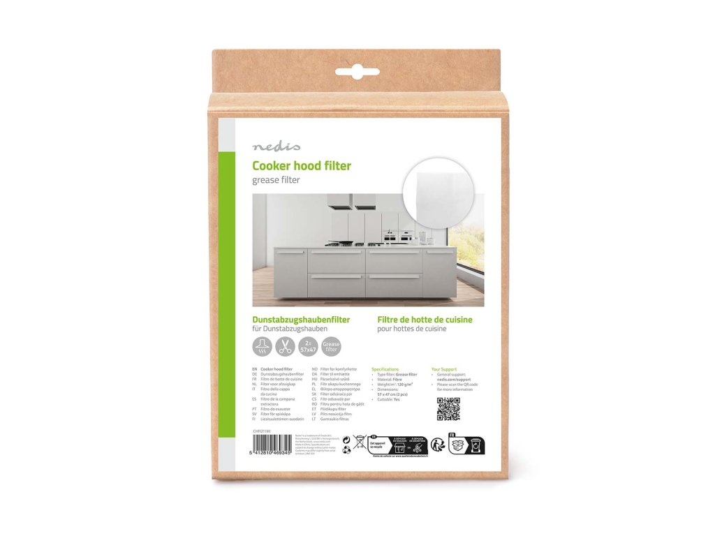 Tento univerzální tukový filtr do odsavače par pohlcuje tuk a vlhkost při smažení, vaření a fritování a zabraňuje tak nepříjemnému zápachu v kuchyni. Filtr je samozhášivý podle normy A0. Filtr je vhodný pro většinu odsavačů par a lze jej individuálně zkrátit podle velikosti. Pro udržení dobré úrovně filtrace se doporučuje měnit filtr každé 3 měsíce.