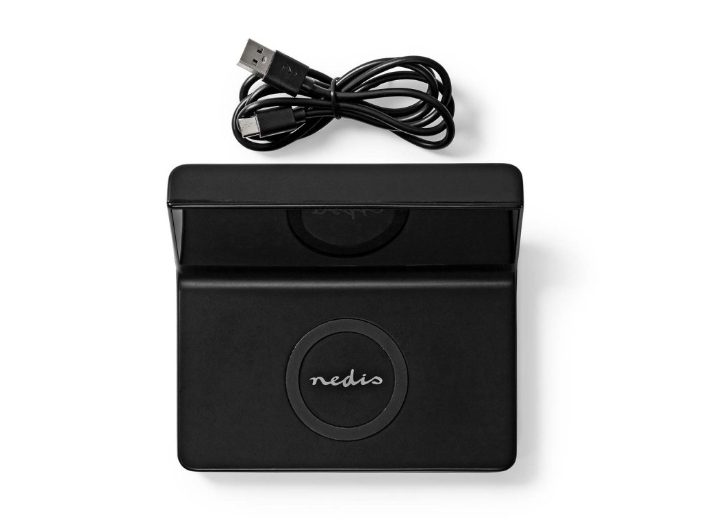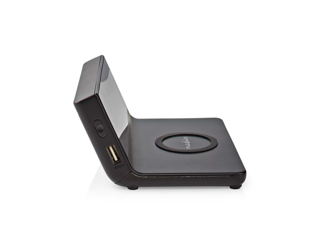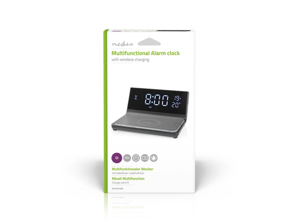 Nedis WCACQ20BK bezdrátová nabíječka mobilu, Qi certifikace, budík, černá