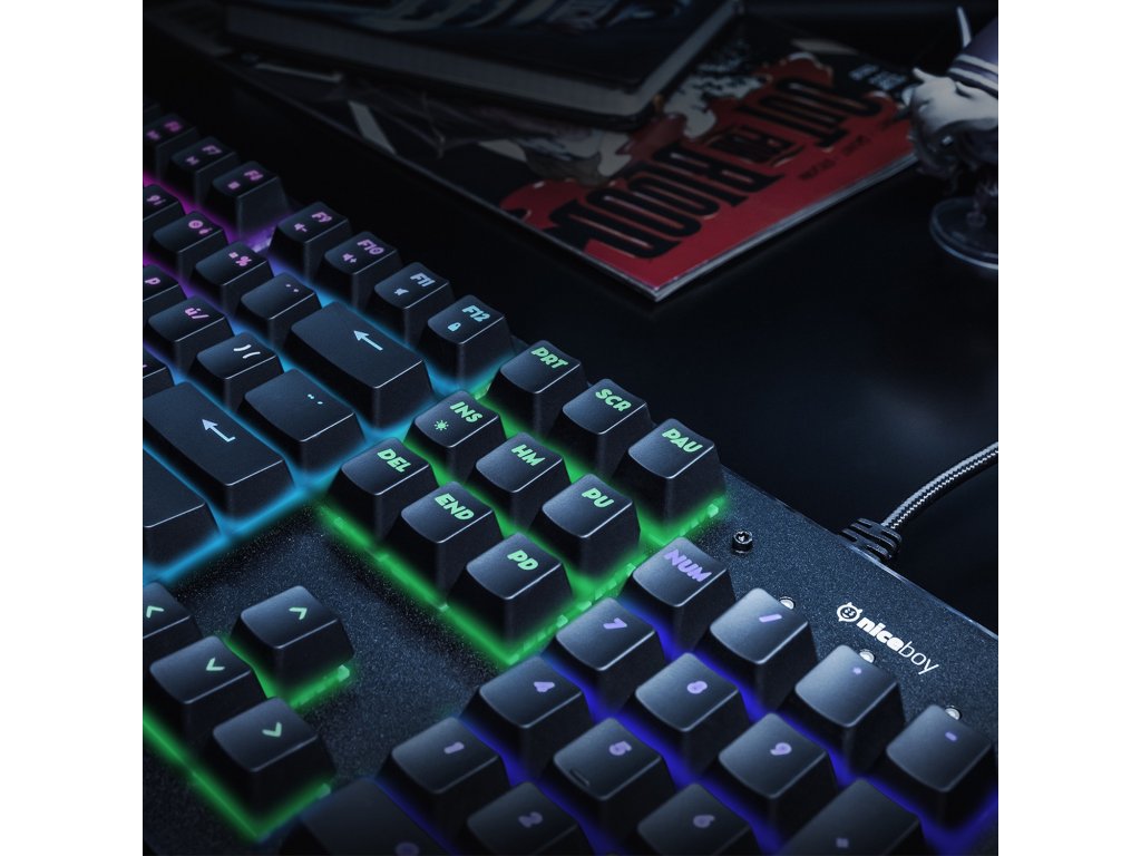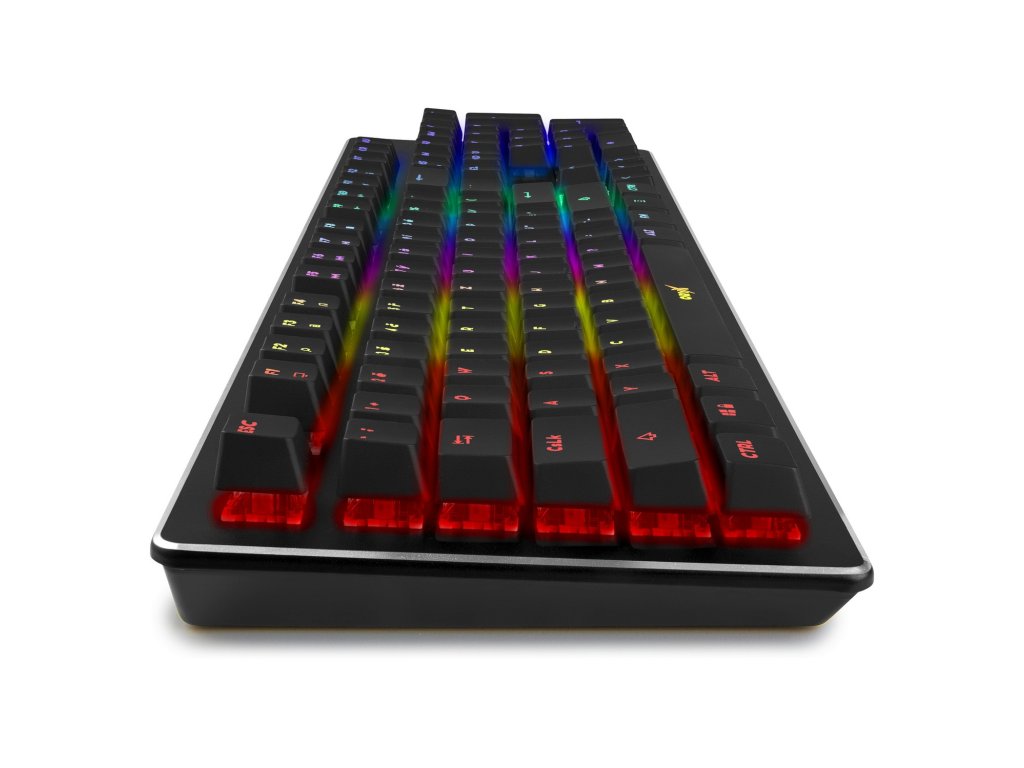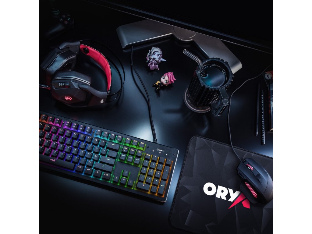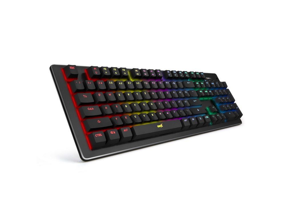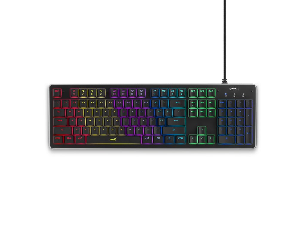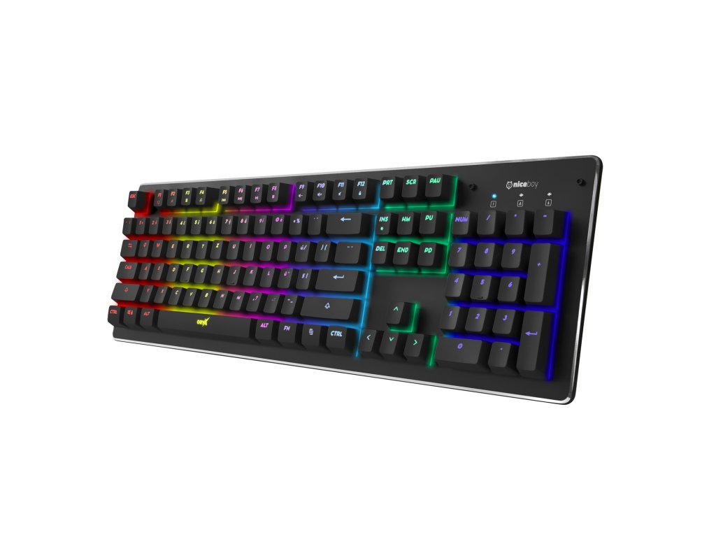 Herní klávesnice Niceboy ORYX K400 charakterizuje odolné zpracování s kovovým povrchem, nastavitelné podsvícení a kvalitní OUTEMU red spínače, anti-ghosting pro všechny klávesy, WinLock a nechybí ani multimediální klávesy.