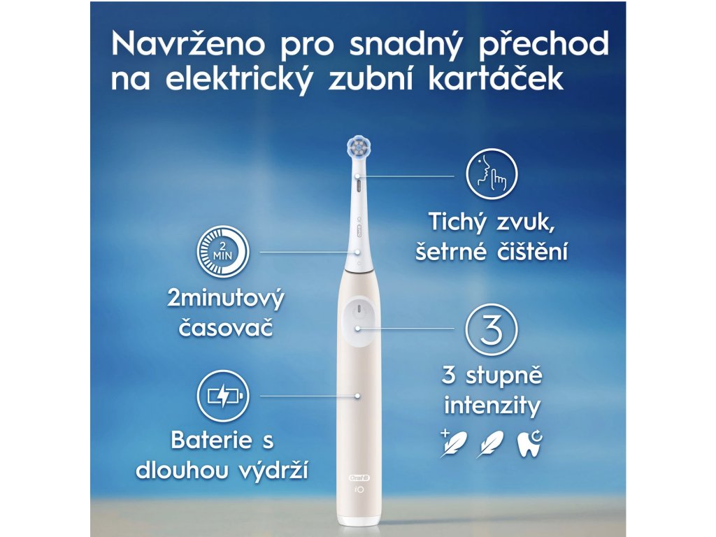 Součástí balení je nabíjecí stojánek a kartáčková hlavice iO. Výkonná dobíjecí baterie nabízí dlouhou výdrž mezi nabíjením, takže kartáček bez problémů využijete i při cestování.