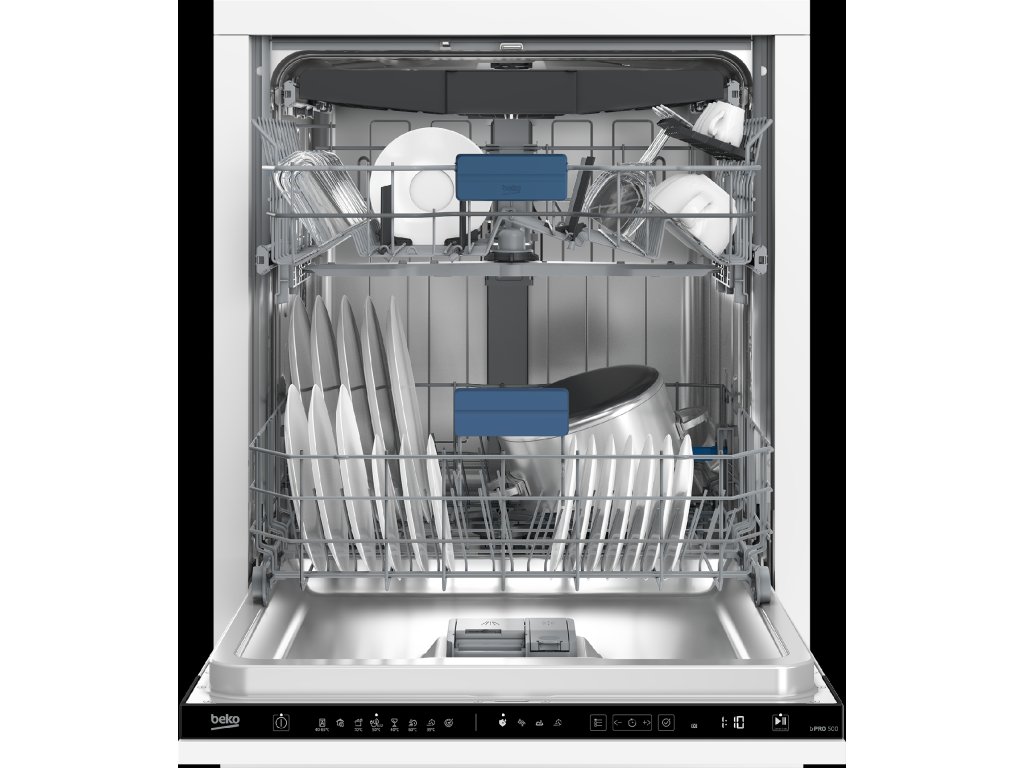 Příborová přihrádka poskytuje dostatek prostoru pro rozložení příborů a drobného nádobí a je vybavená vlastním sprchováním. Díky příhrádce se ve spodním koši uvolní další místo pro velké kusy nádobí.