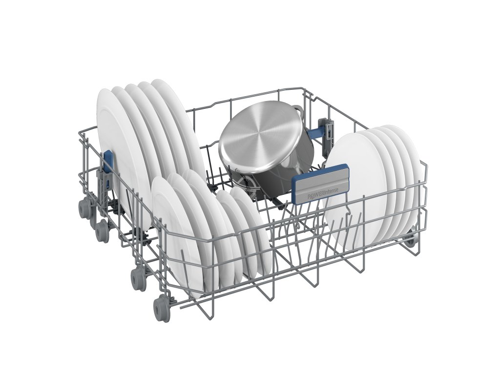 PowerIntense důkladně umyje nádobí i v těžko dostupných místech díky čtyřem rotačním ramenům.