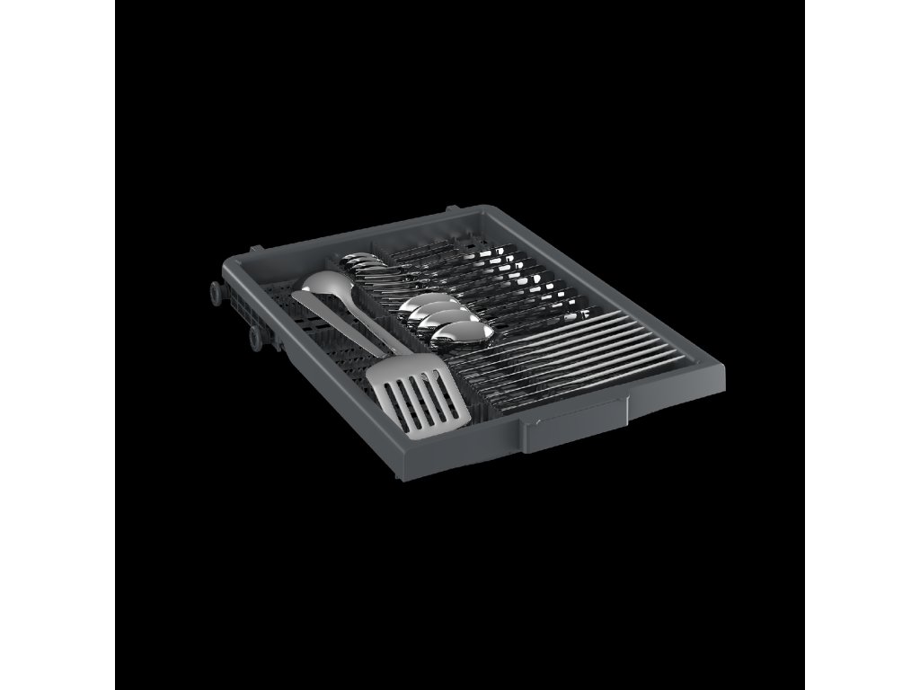 Příborová přihrádka poskytuje dostatek prostoru pro rozložení příborů a drobného nádobí a je vybavená vlastním sprchováním. Díky příhrádce se ve spodním koši uvolní další místo pro velké kusy nádobí.