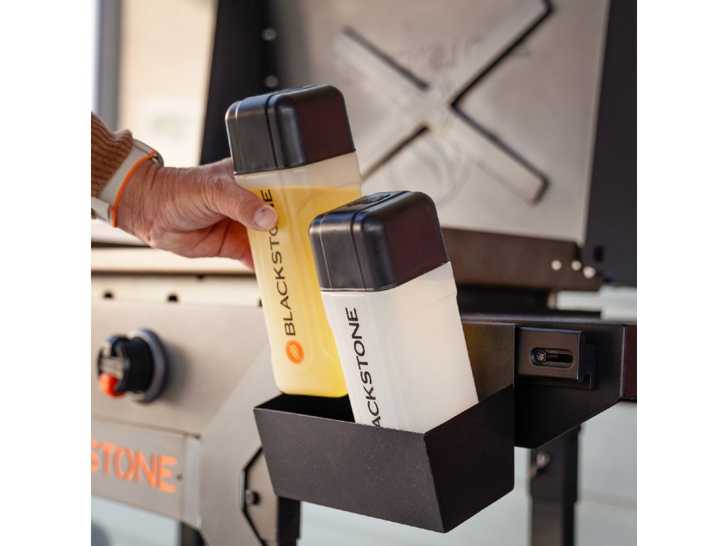 - Zadní systém odvádění tuku (Rear Grease Management): Odsuňte tuk a zbytky jídla dozadu pro snadné čištění.