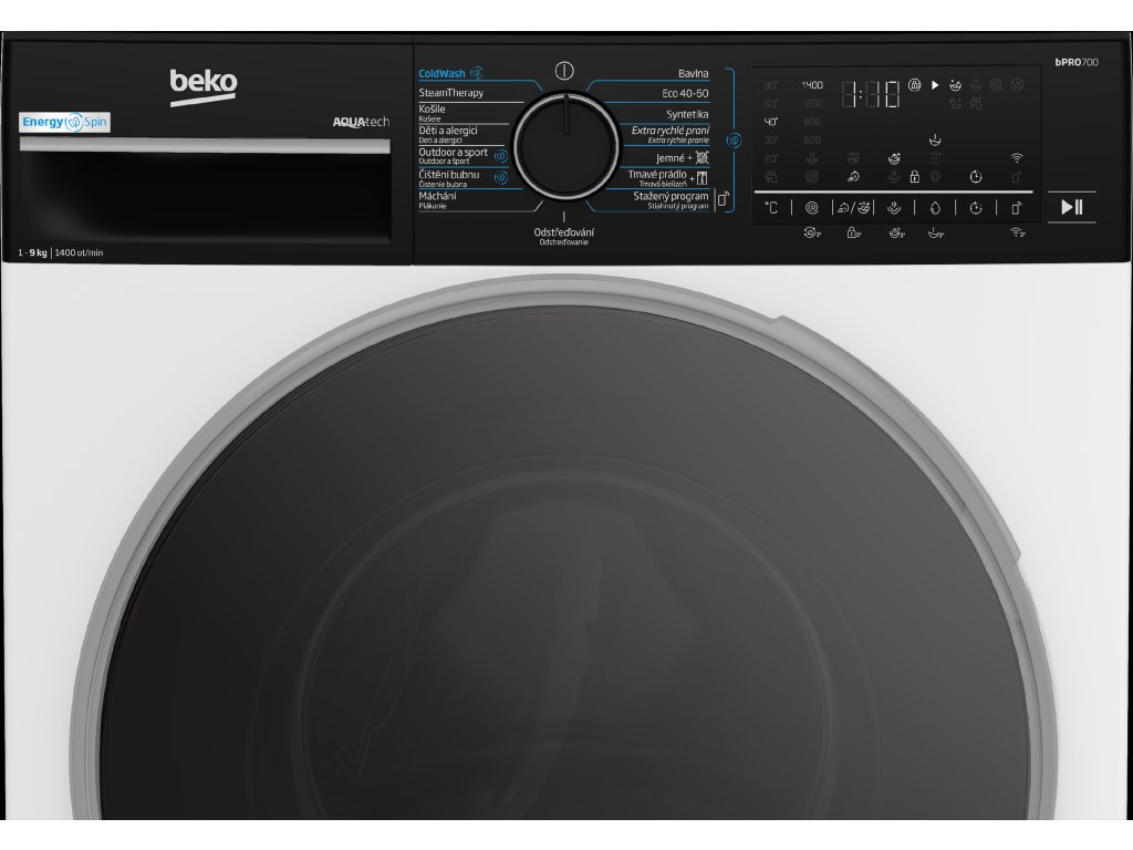 Model Beko B7WFU69415WBBG je výkonná pračka navržená pro rodinné použití, která spojuje špičkové technologie s uživatelskou praktičností. Díky kapacitě 9 kg je ideální pro větší praní a při 1400 otáčkách za minutu zajistí kvalitní odstřeďování.