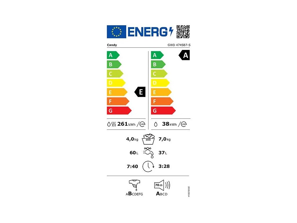 | Energetická třída (praní + sušení / praní) | E / A |
