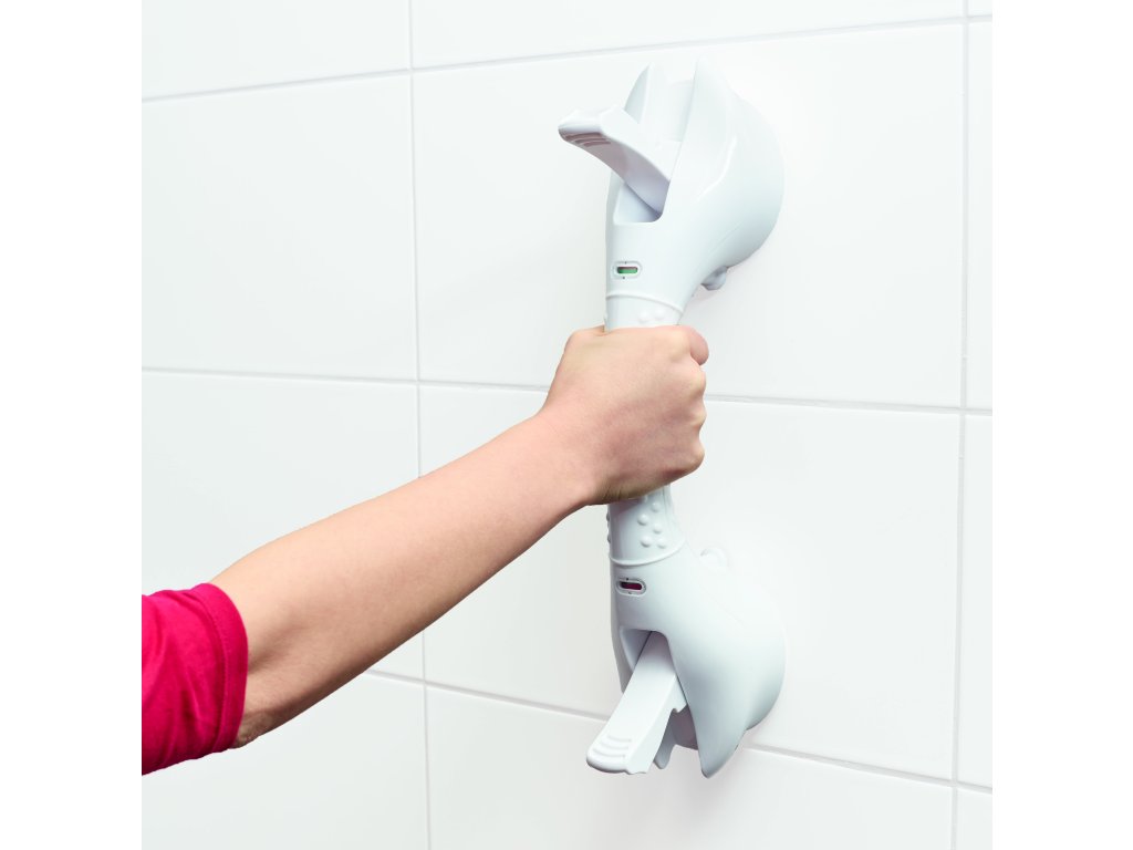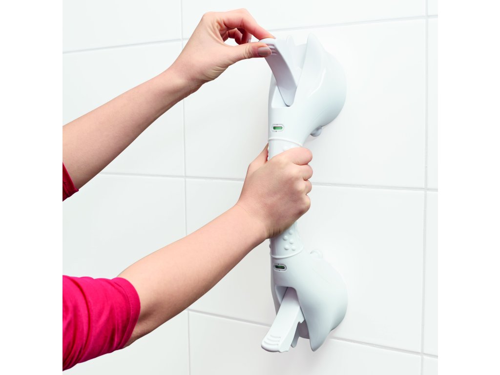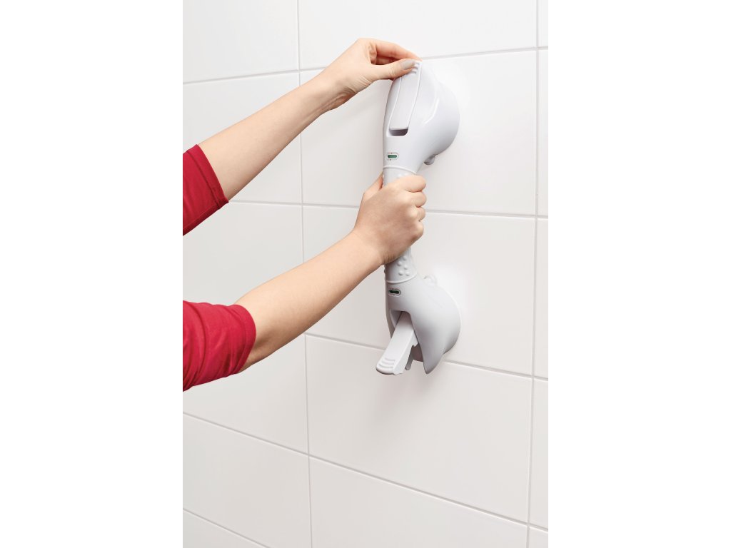 Kvalitní a spolehlivé 40 cm mobilní madlo VIT-70110160. Madlo bylo navrženo tak, aby poskytlo podporu v přirozeném pohybu, například při vcházení a vycházení ze sprchy nebo vany. Na madlo nelze přenést celou váhu těla, je navrženo pro zatížení max. 60 kg. Lze jej připevnit nebo odstranit během několika vteřin. Pro upevnění není nutné žádné vrtání otvorů nebo šroubování, dvě silné přísavky se pevně přitisknou na neporézní, pevný povrch a vakuové úchyty zatlačením dolů madlo dokonale a bezpečně upevní. Vestavěná vizuální indikace u přísavek signalizuje správné upevnění.