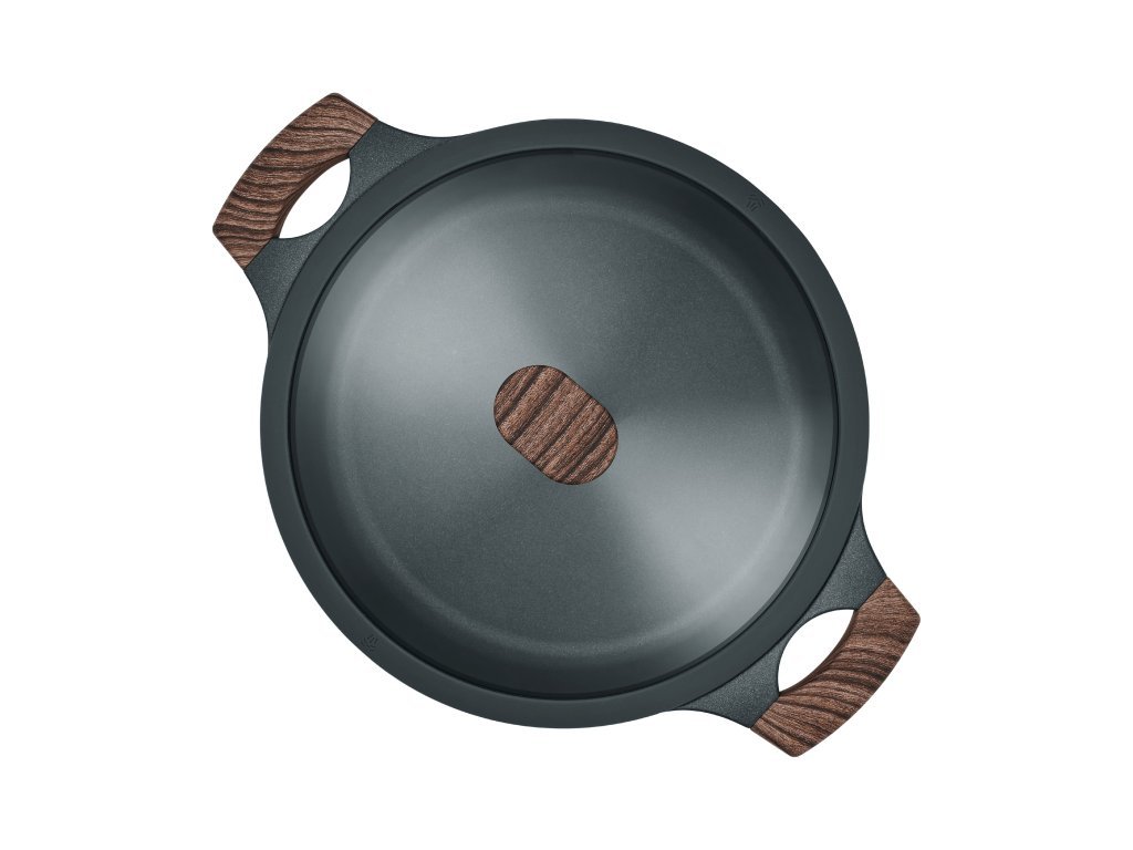 Skleněné poklice se silikonovým lemem a otvorem pro únik páry podporují dokonalý výsledek při přípravě jídel. Ergonomické dřevěné rukojeti s povrchem Soft Touch a univerzální indukční dno pak dělají z této kolekce spolehlivou volbu pro každou kuchyni.