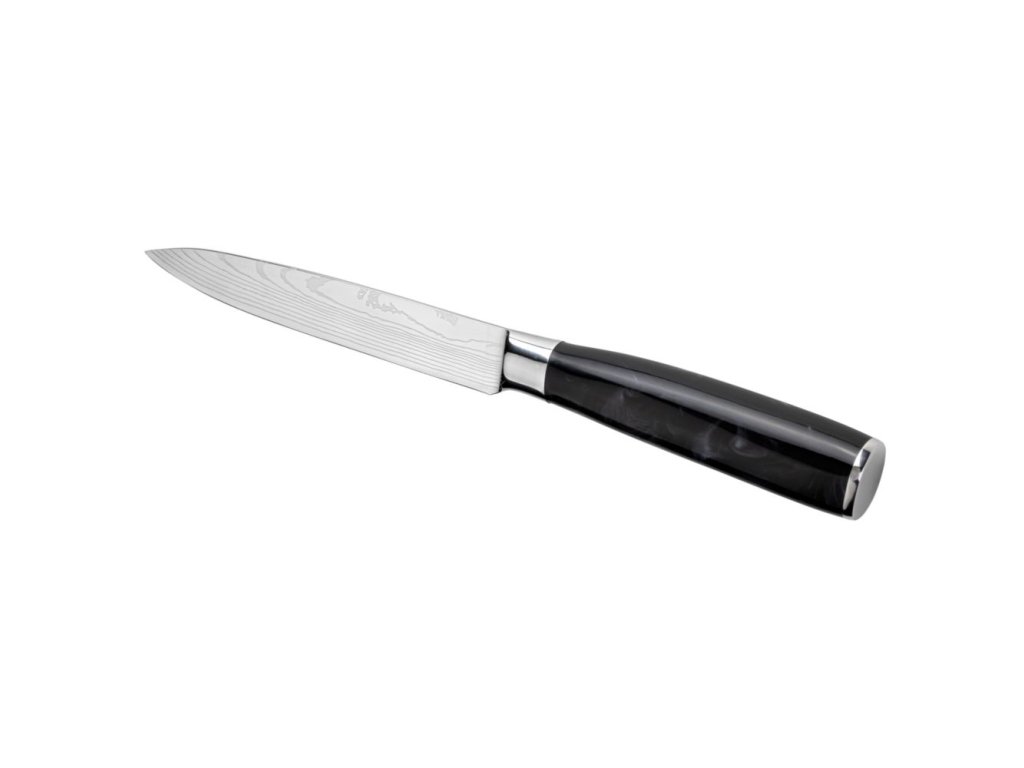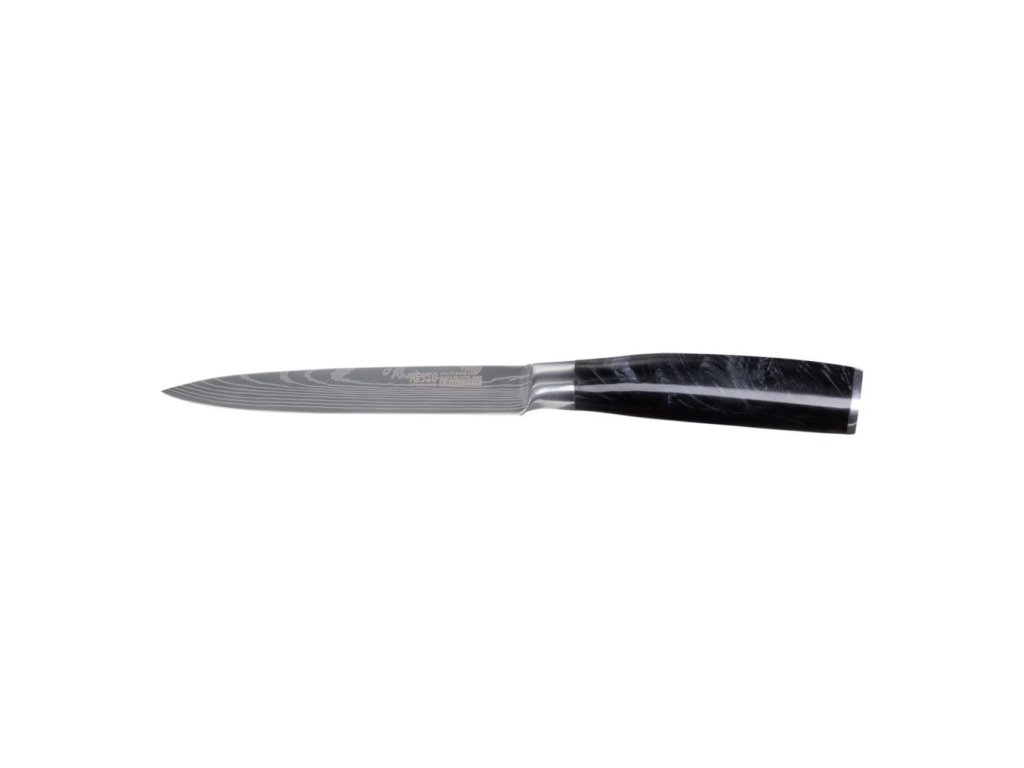 My v Resto Kitchenware věříme ve věci, které vám usnadní život. Krásná ergonomická rukojeť je vyrobena s texturou černého mramoru, která dodává noži vážnost, a má celoplošnou podložku, která bude sloužit k ochraně vašich prstů za všech okolností a zároveň vám poskytne větší pohodlí, které potřebujete, takže bude vždy potěšení a nikdy není fuška začínat na prkénku.