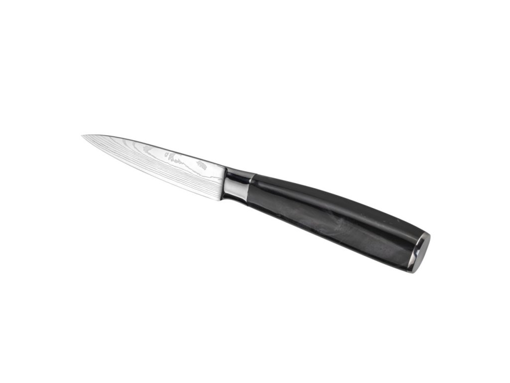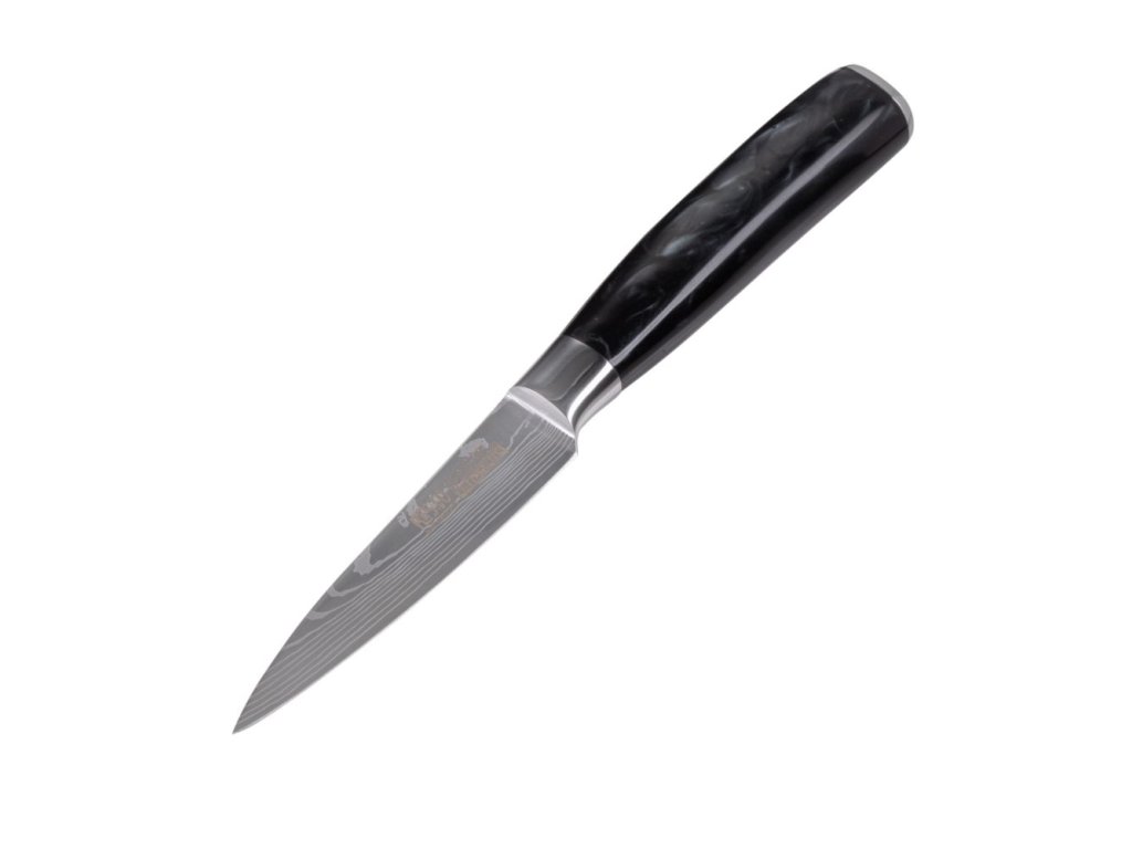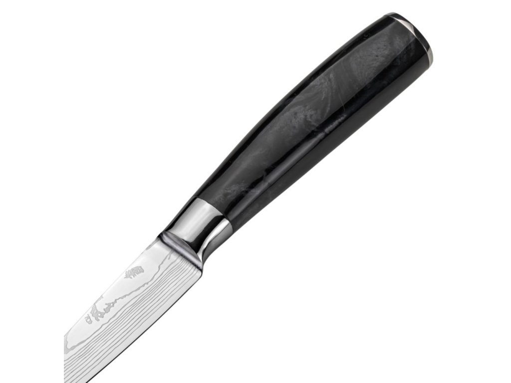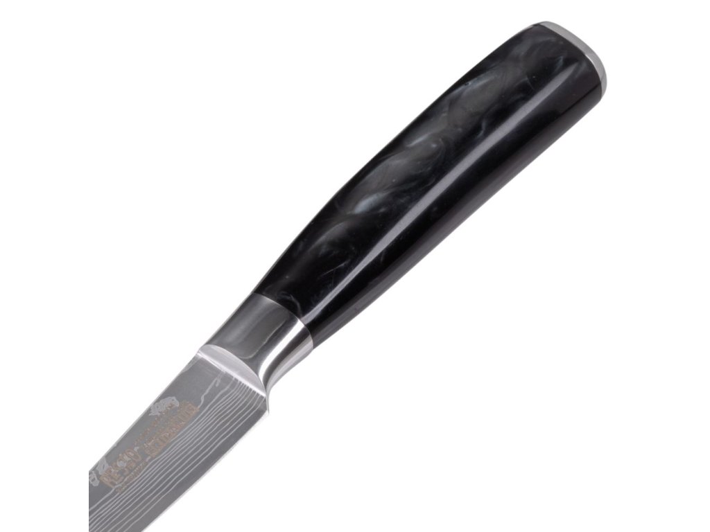 Jedinečný laserový damaškový obtisk a speciálně navržená rukojeť s černým mramorovým kamenem spojují moderní technologii s prastarou praxí výroby damašské oceli.