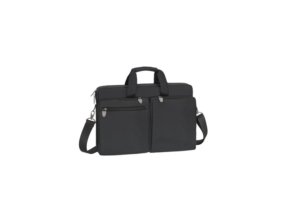 Taška na notebook s úhlopříčkou 17.3“ v černém provedení s elegantním interiérem ve stříbrné barvě.