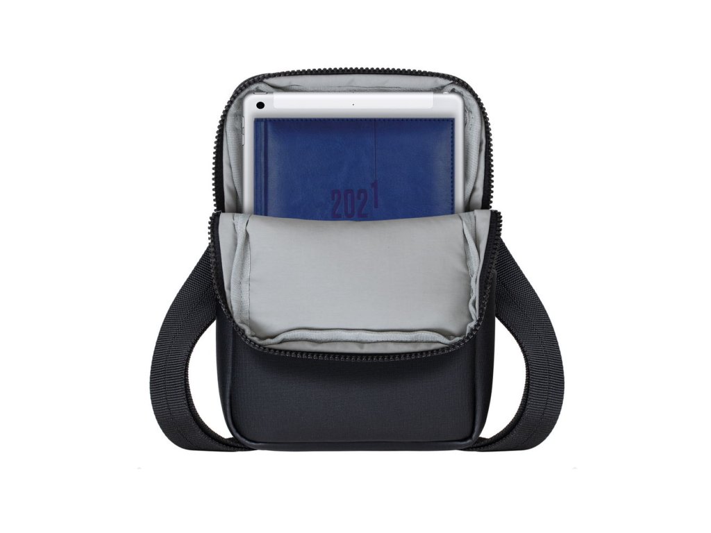 • Hlavní přihrádka na tablet je vybavena kapsou na zip pro peněženku s karabinou na klíče