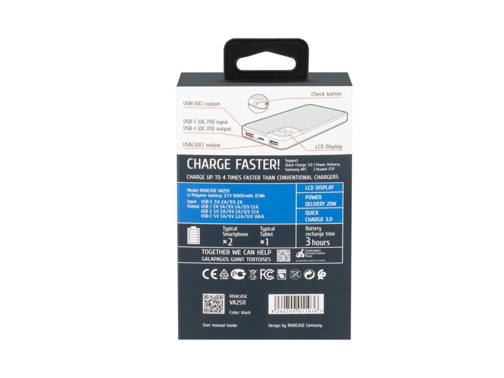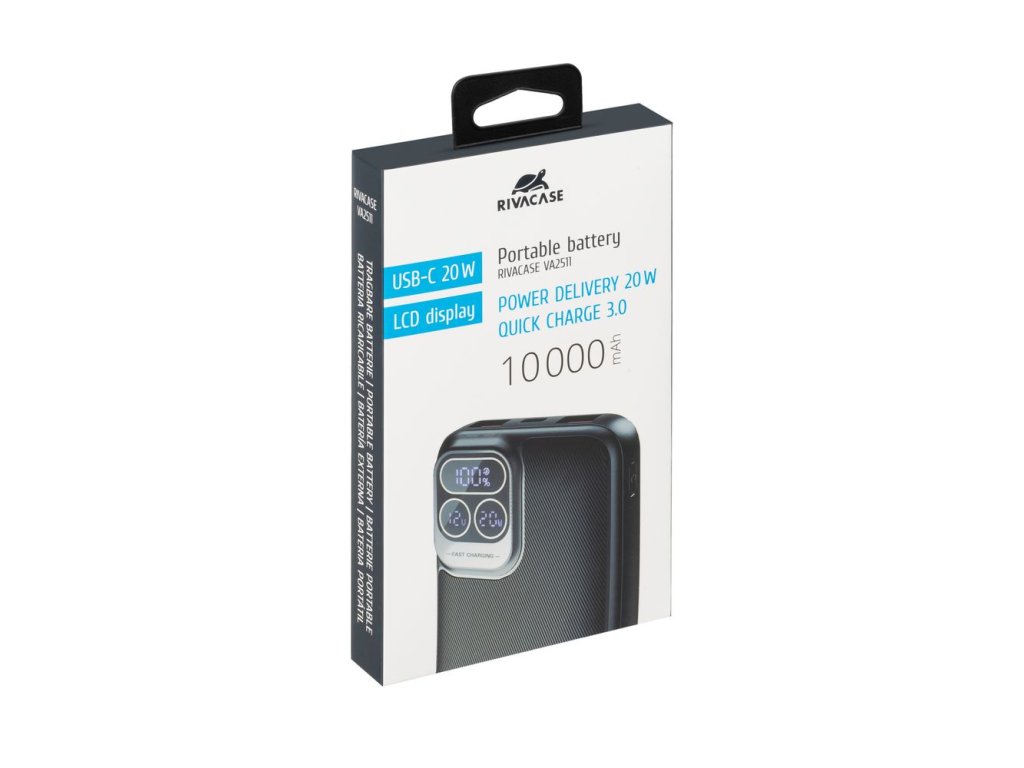 Rivapower VA2511 powerbanka Quick Charge 20W s LDC displejem 10000mAh