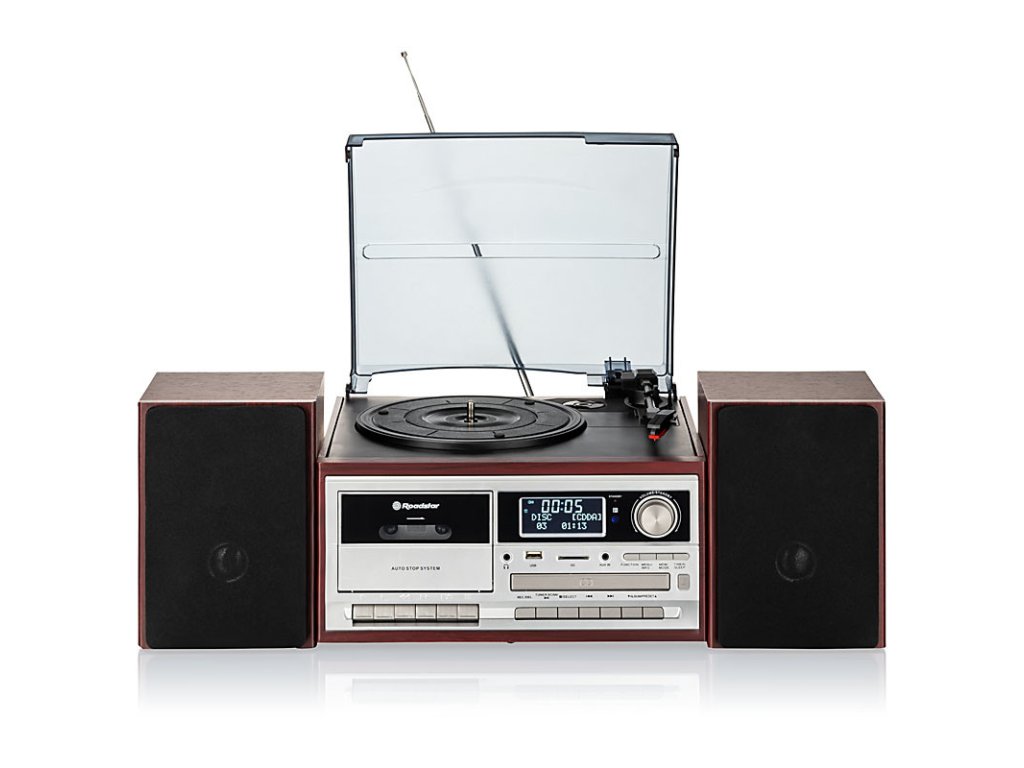 Druh Hi-Fi: mikrosystém Celkový výkon RMS (W): 8 Přehr. média: CD mechanika; gramodeska; kazetová mechanika; slot pro karty; USB; vstup AUX Přehrávané formáty: MP3 Tuner: digitální Vlnový rozsah: FM Automatické ladění: NE RDS tuner: NE Internetové rádio: NE Vstup AUX: ANO USB : ANO Bluetooth: ANO NFC: NE Wi-Fi: NE Sluchátkový výstup: ANO LCD displej: ANO Napájení: síťové Specifické funkce: Autostop Provedení výrobku: dřevo Poškozený přepravní obal (krabice, polystyren či plastová folie).Jedná se o nový, plně funkční výrobek, na který se vztahuje standardní, minimálně dvouletá, záruka.