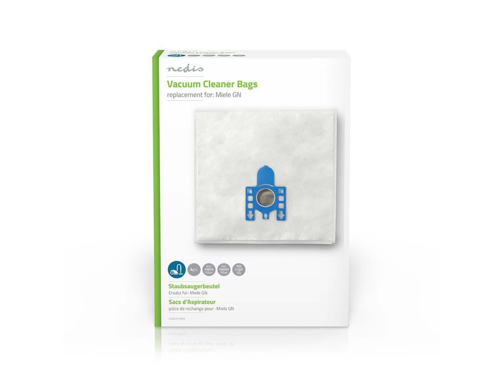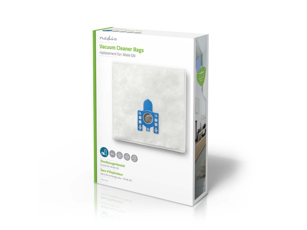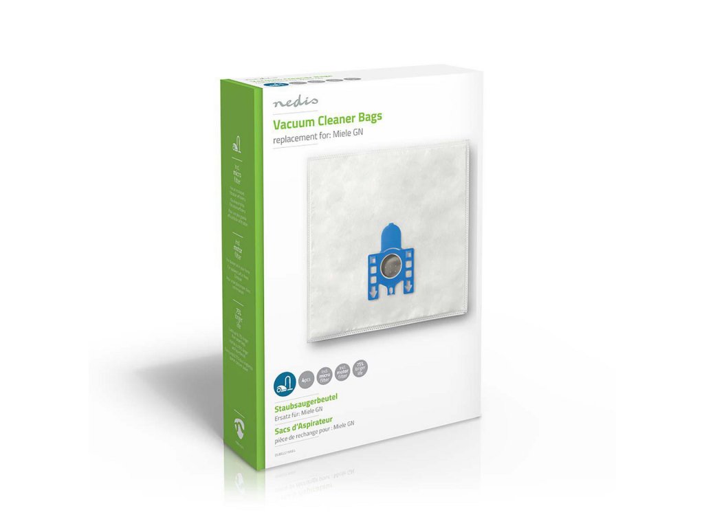 Vysoce kvalitní vysavačové sáčky Nedis®, samouzavírací systém, vyrobené z 5-ti vrstvého syntetického materiálu. Balení obsahuje 4 ks + mikrofiltr + motorový filtr.