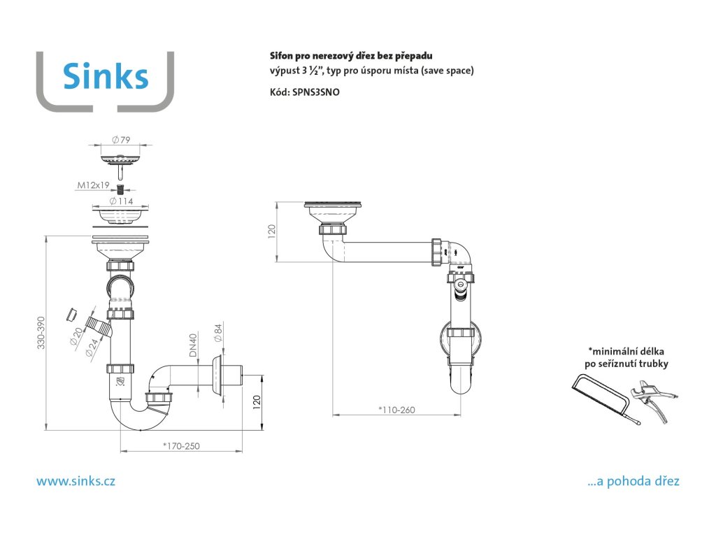Sifon 3 1" pro nerez. dřezy (bez přepadu) s úsporou místa