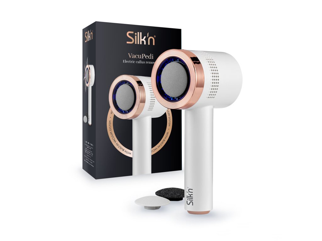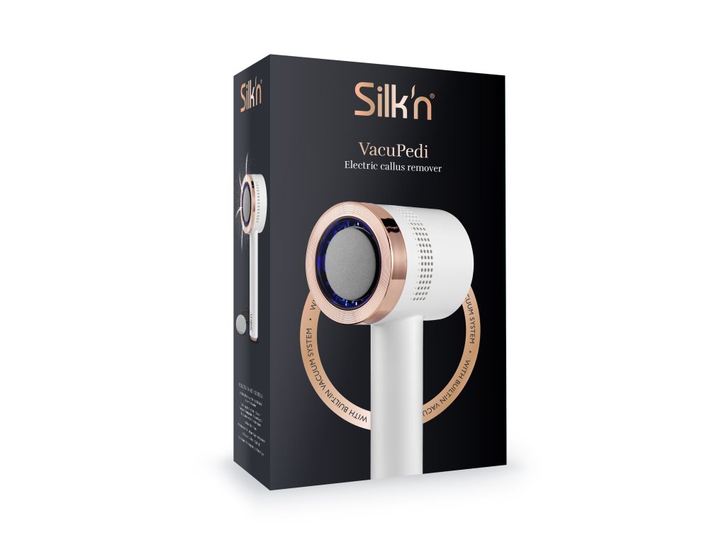 Silk'n VacuPedi je elektrický odstraňovač ztvrdlé kůže a mozolů se zabudovaným vakuovým systémem. Během několika sekund odstraní mozoly a ztvrdlou kůži na chodidlech a zároveň do přístroje nasaje odumřelé kožní buňky.