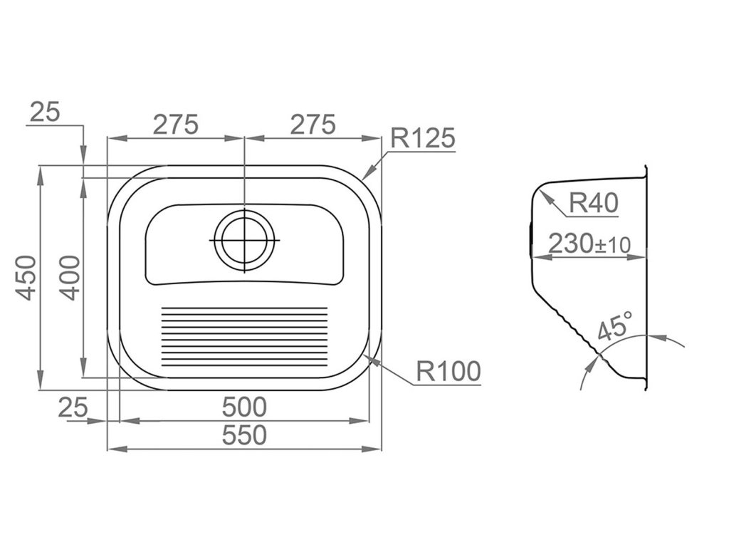 Sinks ACQUAVIVA 550 V 1,0mm leštěný