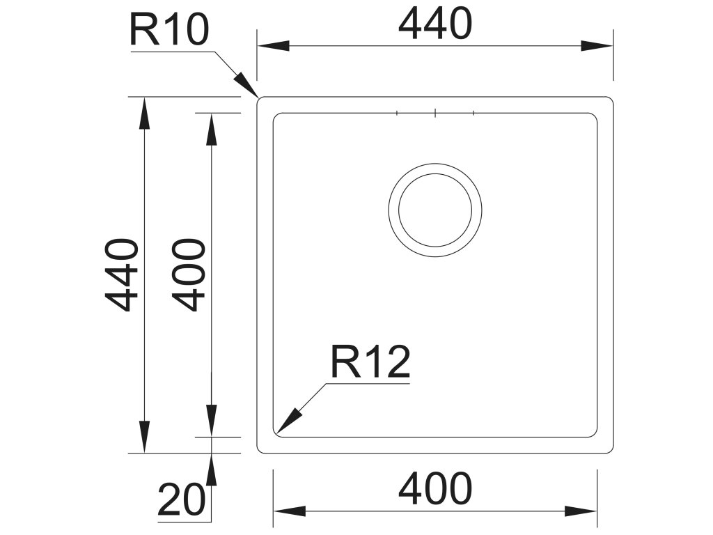| Spodní skříňka: | 500 mm (450 mm po úpravě skříňky) |