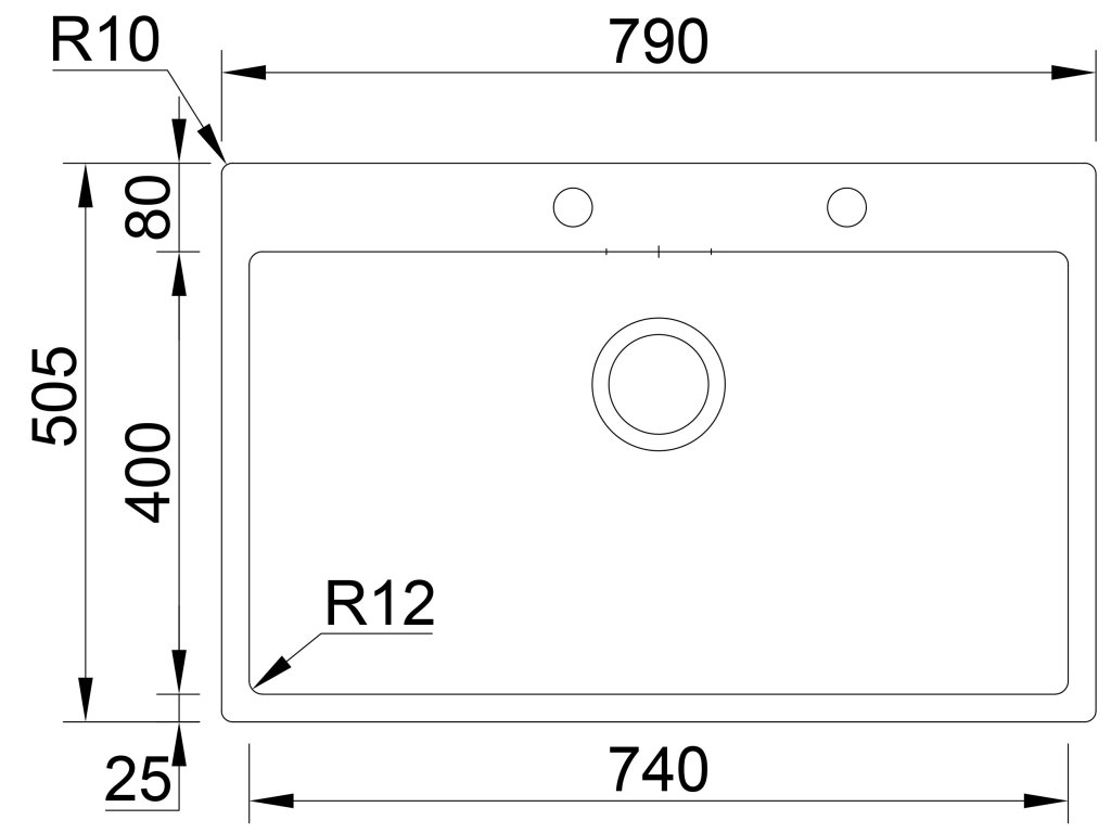 Nerezový dřez Sinks BOXER 790 RO je prostorný dřez z nerezu o tloušťce 1,2 mm. Tento typ dřezu má 2 typy montáže - horní a přesahovou montáž. Vanička má hloubkou 200 mm. Pro skříňku od 800 mm.