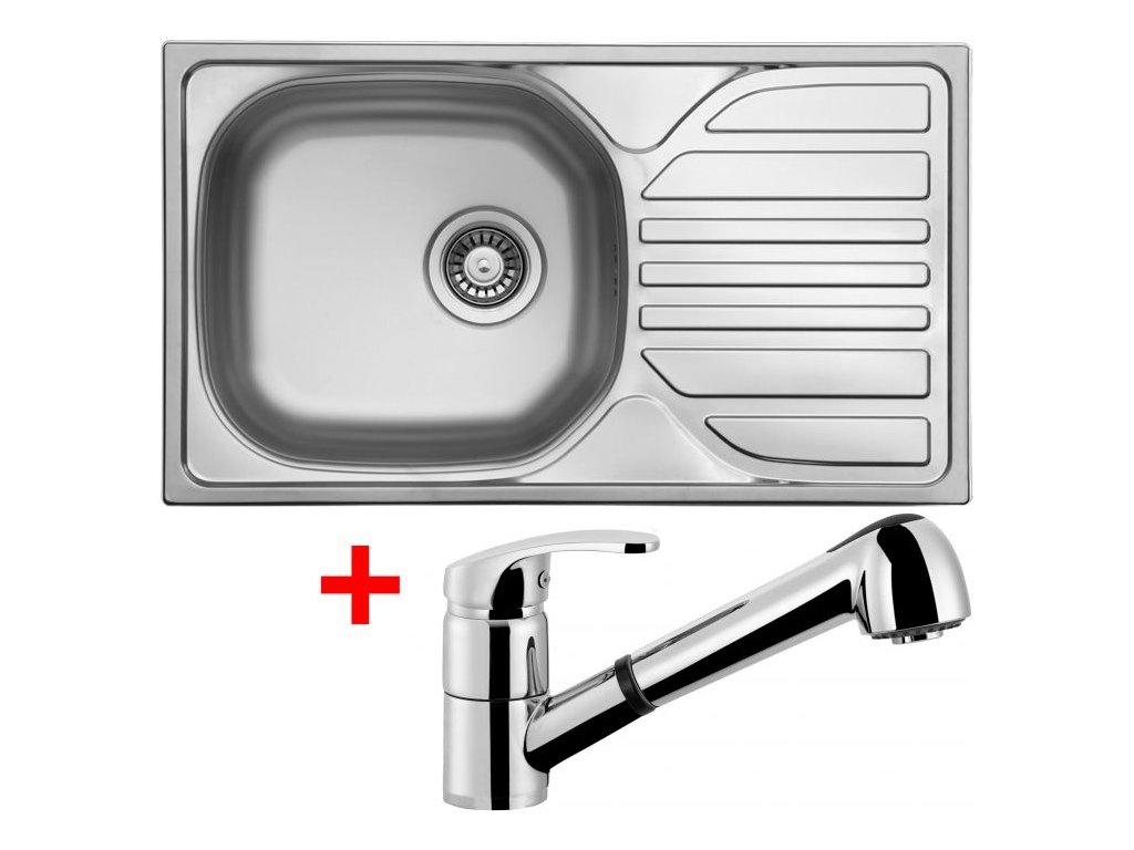 Nerezový dřez s odkapem Sinks COMPACT 760 V 0,5mm matný se sítkovou výpustí.