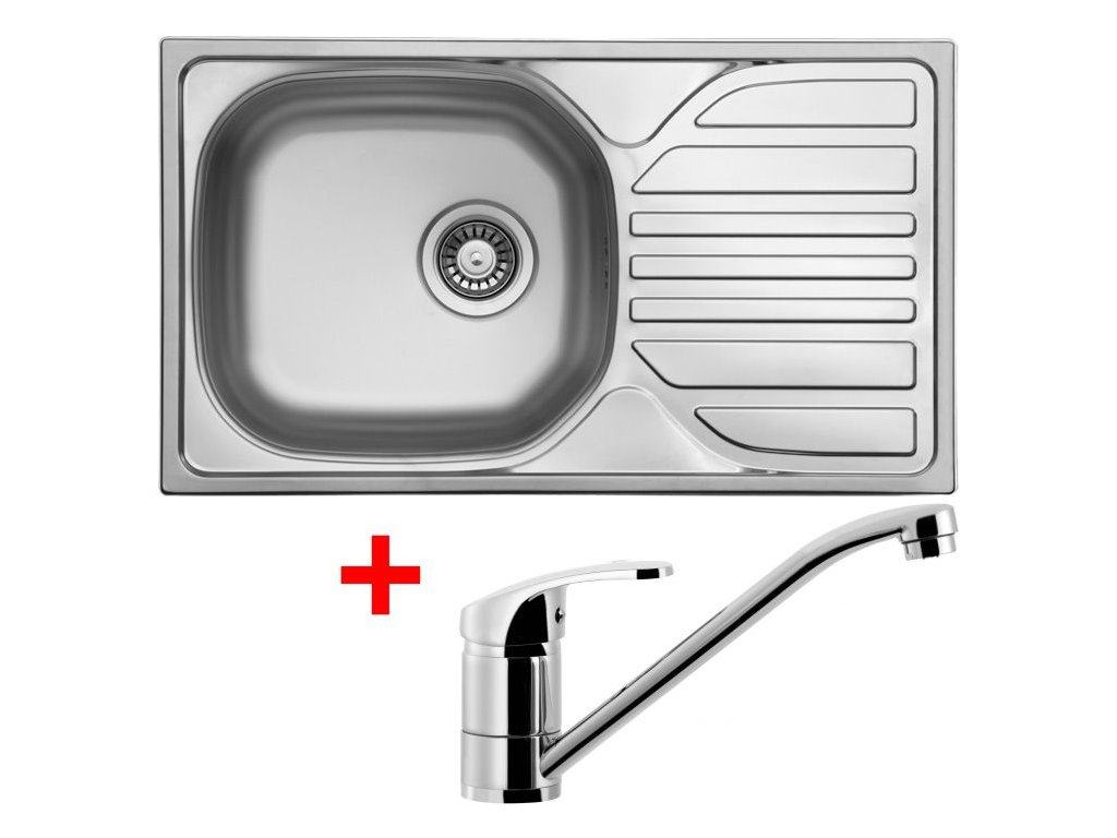 Nerezový dřez s odkapem Sinks COMPACT 760 V 0,5mm matný se sítkovou výpustí.