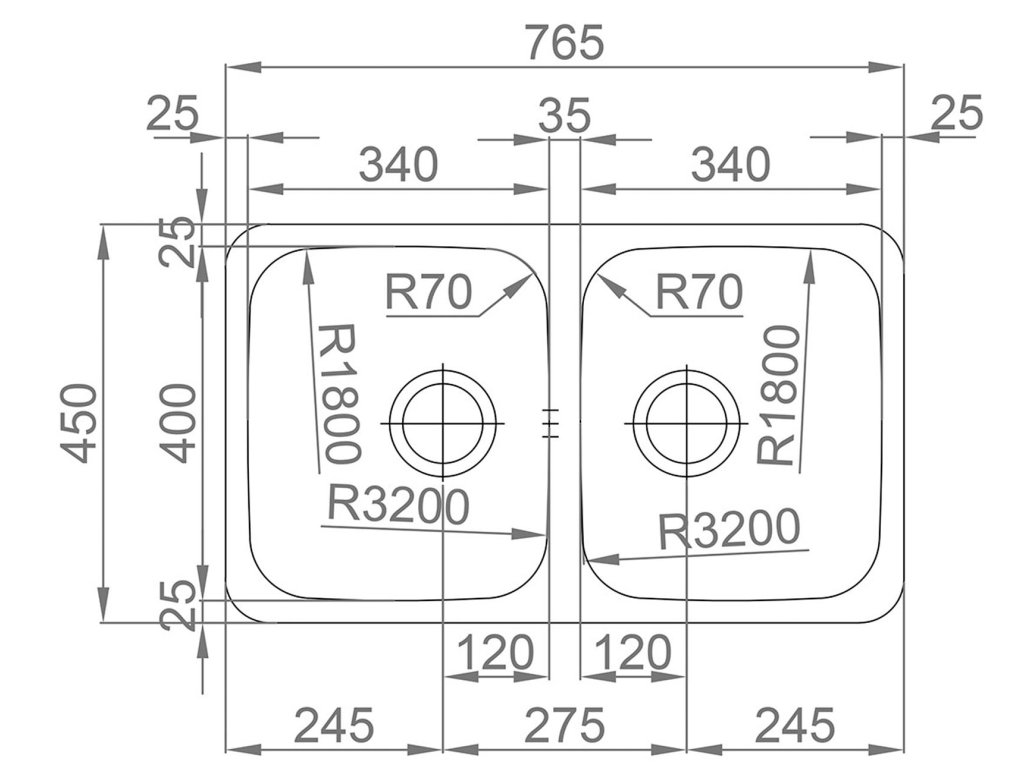 Rozměr dřezu 765 x 450 mm a hloubka 200 mm. Vanička je svařovaná. Je určen pro skříňku od 800 mm. Záruka 15 let.