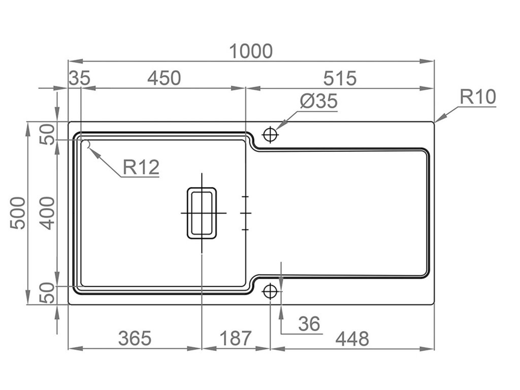 • Rozměr dřezu 1000 x 500 mm