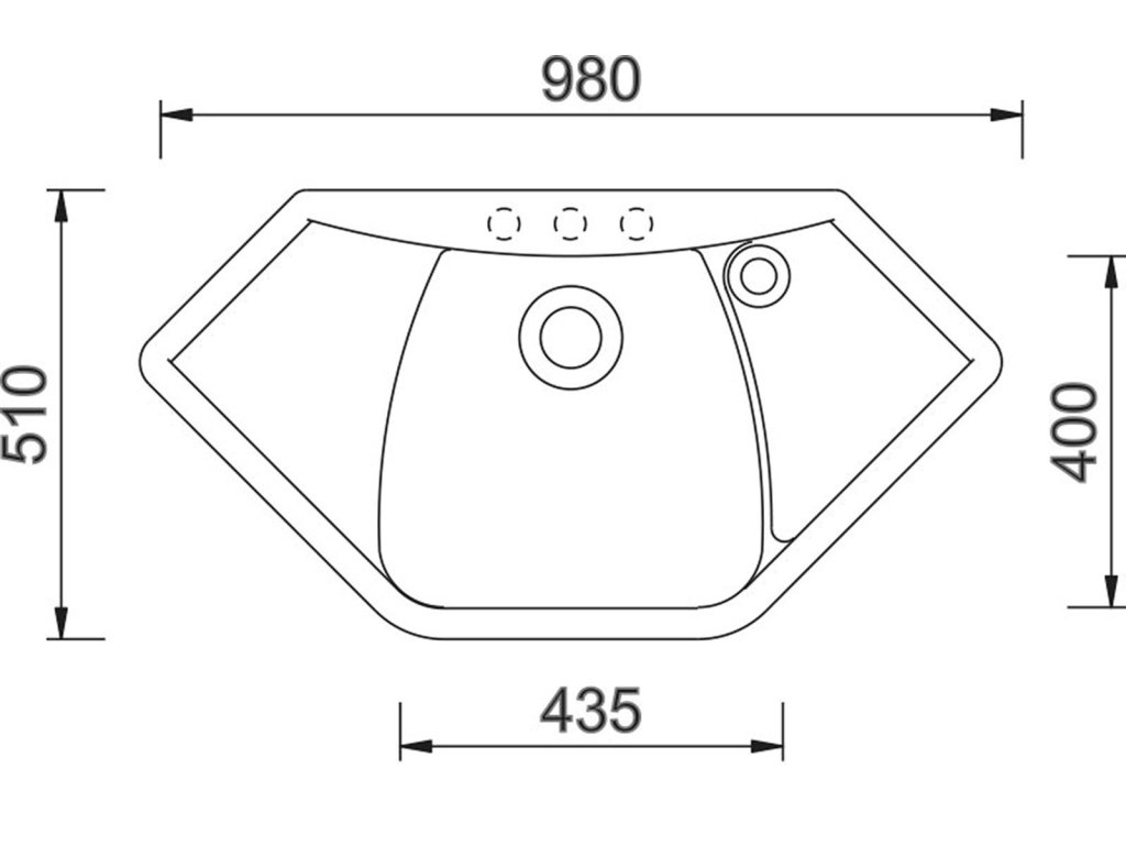 Dřez je určen pro skříňku od 500 mm a jeho rozměr činí 980 x 510 mm. Hloubka 210 mm zajistí bezproblémové používání.