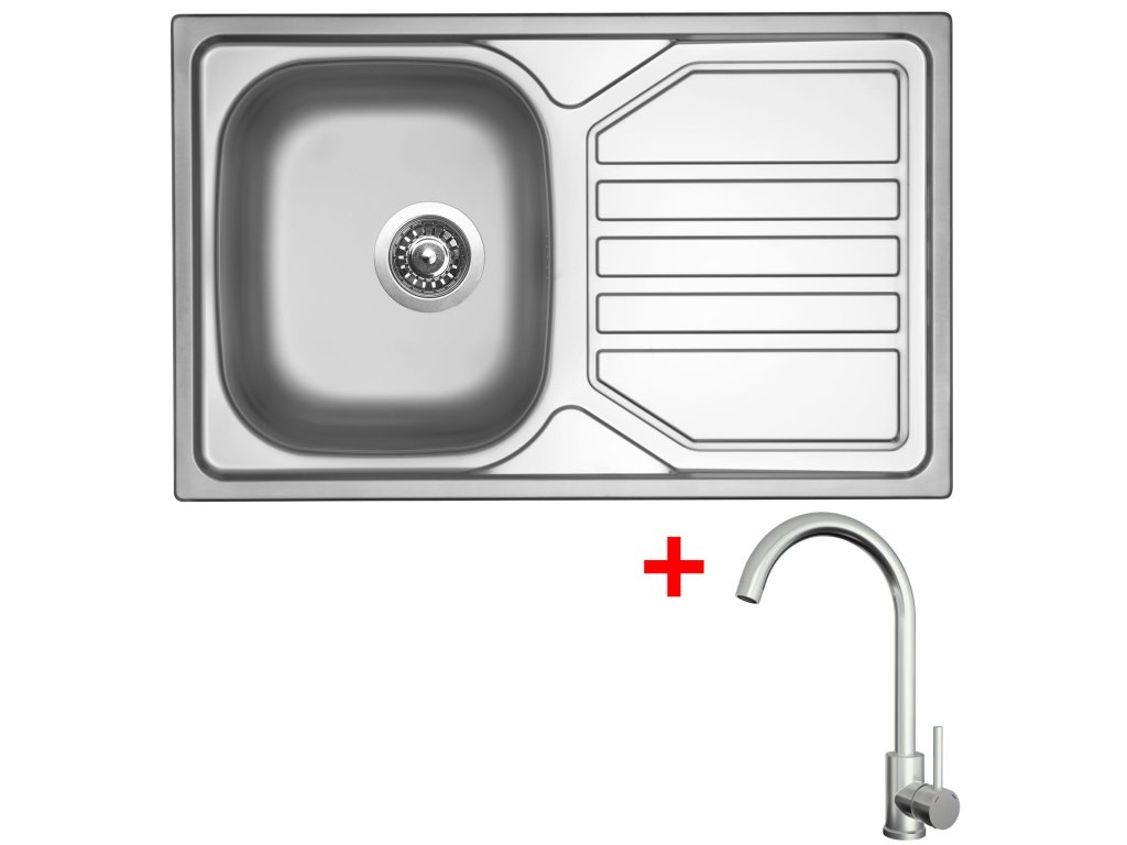 Nerezový dřez s odkapem Sinks Okio 800 V 0,7mm matný se sítkovou výpustí.