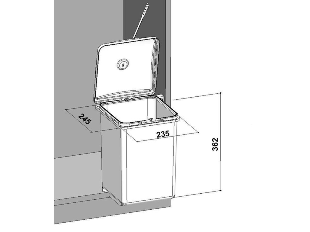 - Odpadkový koš je určen do spodní skříňky od 400 mm