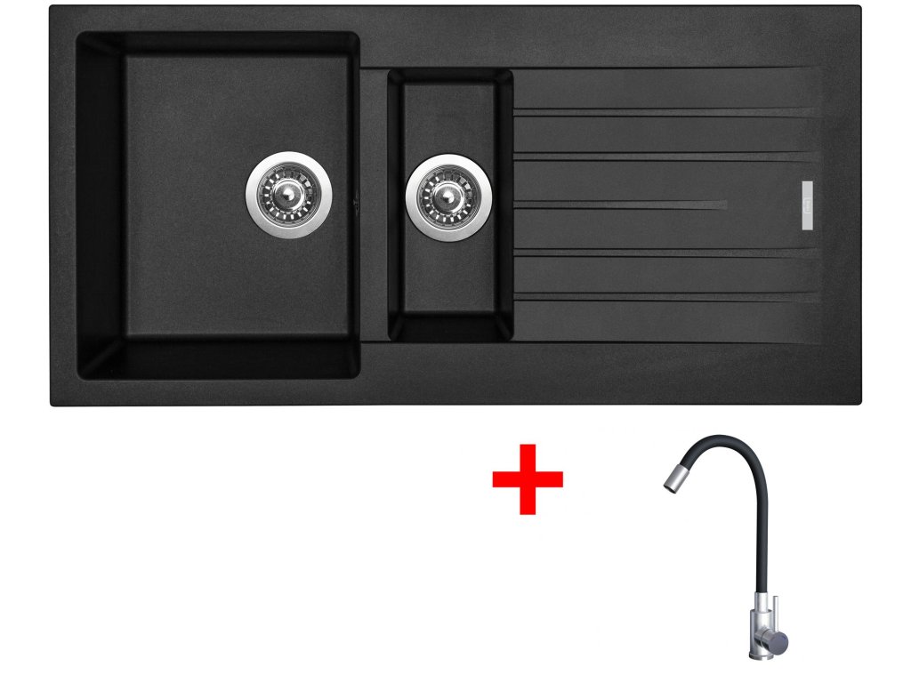 Sinks PERFECTO 1000.1 Pureblack + Elasta nerez/černá