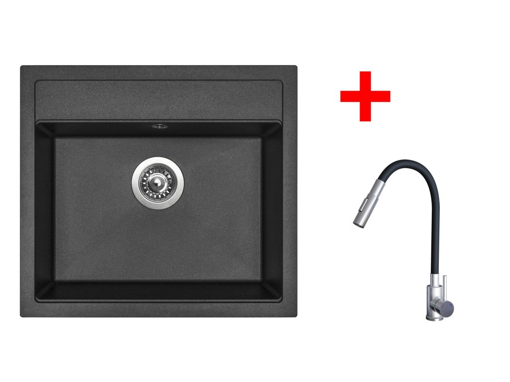 Sinks SOLO 560 Metalblack + ELASTA S nerez/černá
