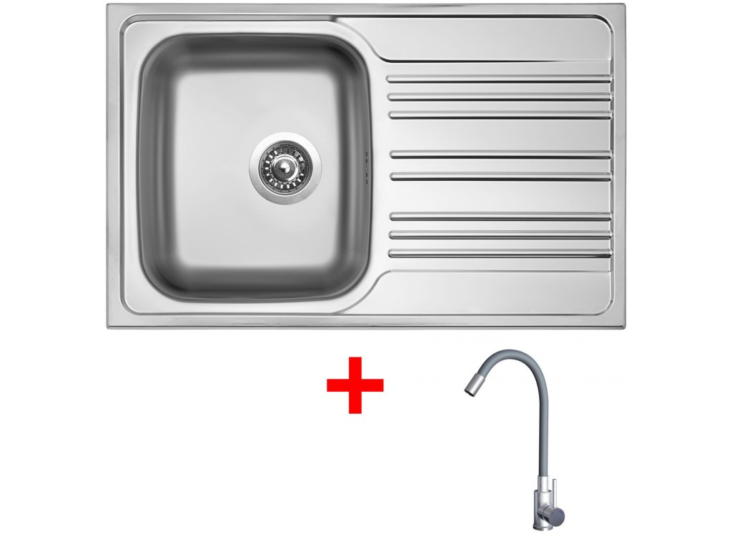 Nerezový dřez s odkapem Sinks STAR 780 V 0,6 mm matný se sítkovou výpustí.