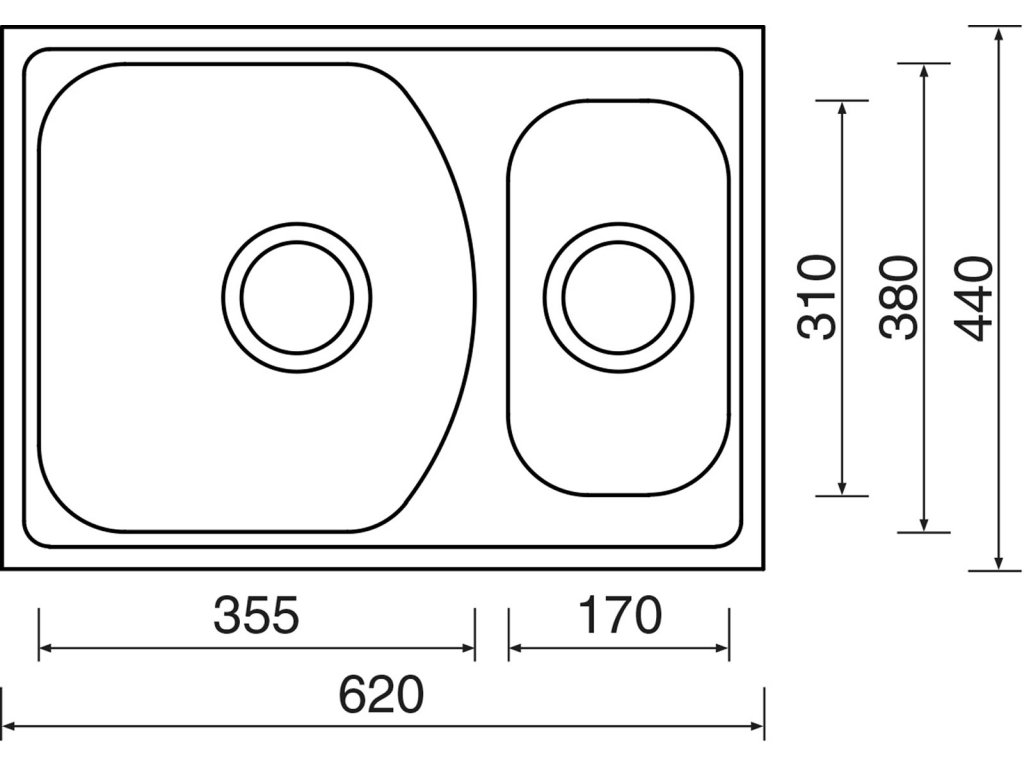 Nerezový dřez Sinks TWIN 620.1 V 0,6mm matný se sítkovou výpustí.