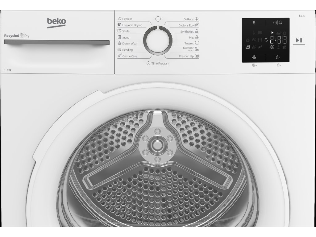 Sušička Beko BM3T372E0W spojuje praktické rozměry, moderní technologie a pohodlí do jednoho výkonného spotřebiče, který zvládne plnohodnotné sušení i v omezeném prostoru.