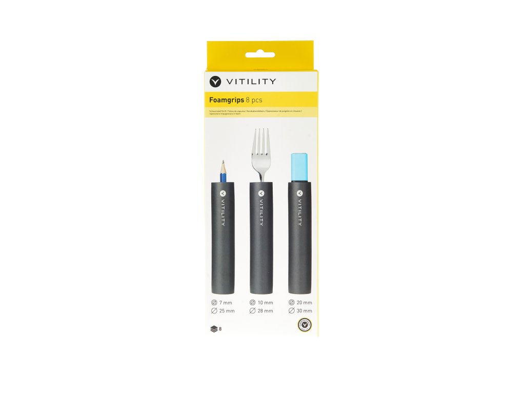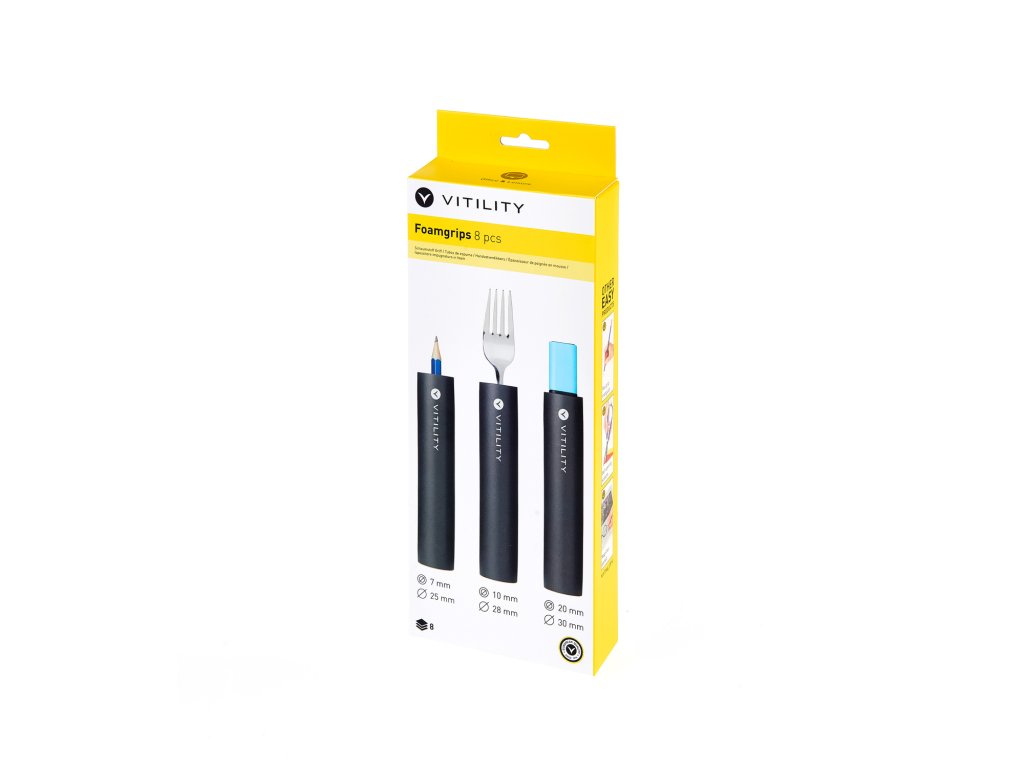 Pokud vás bolí klouby nebo máte natažené svaly na rukou, může být velmi obtížné něco uchopit. Většina předmětů je úzká, a proto je někdy obtížné je uchopit. VITILITY má proto speciální úchytky, které se dodávají ve třech různých vnitřních velikostech díky čemuž je můžete použít pro různé předměty. Ty s malou vnitřní velikostí lze například použít na tužky nebo štětce, střední velikost na příbory nebo zubní kartáček a velký na různé nástroje nebo silné fixy. Je snazší předmět držet a používat Tyto pomůcky vám umožní provádět akci nezávisle a s větším pohodlím. Nemusíte silně mačkat ruce, prsty, takže vás méně obtěžují bolavé klouby nebo ztuhlé svaly.