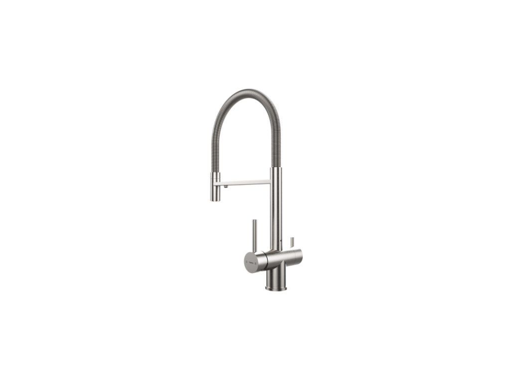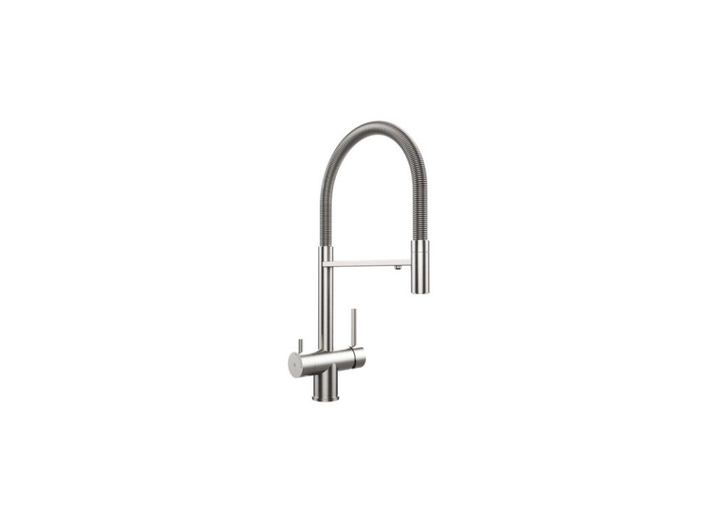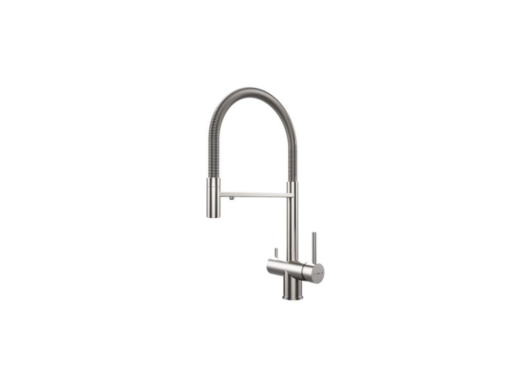 Profesionální kuchyňská baterie s vysokým ramínkem, dvojitou pákou a flexibilní koncovkou