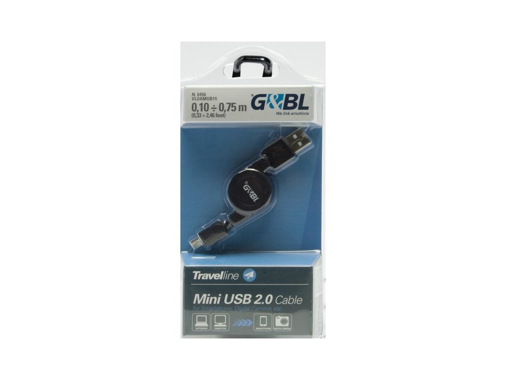 Cestovní svinovací USB kabel 2.0 o délce 0,1 až 0,75 m. Konektory USB A zástrčka - USB mini zástrčka. Použitelný pro Smartphone, digitální kamery a další USB zařízení.