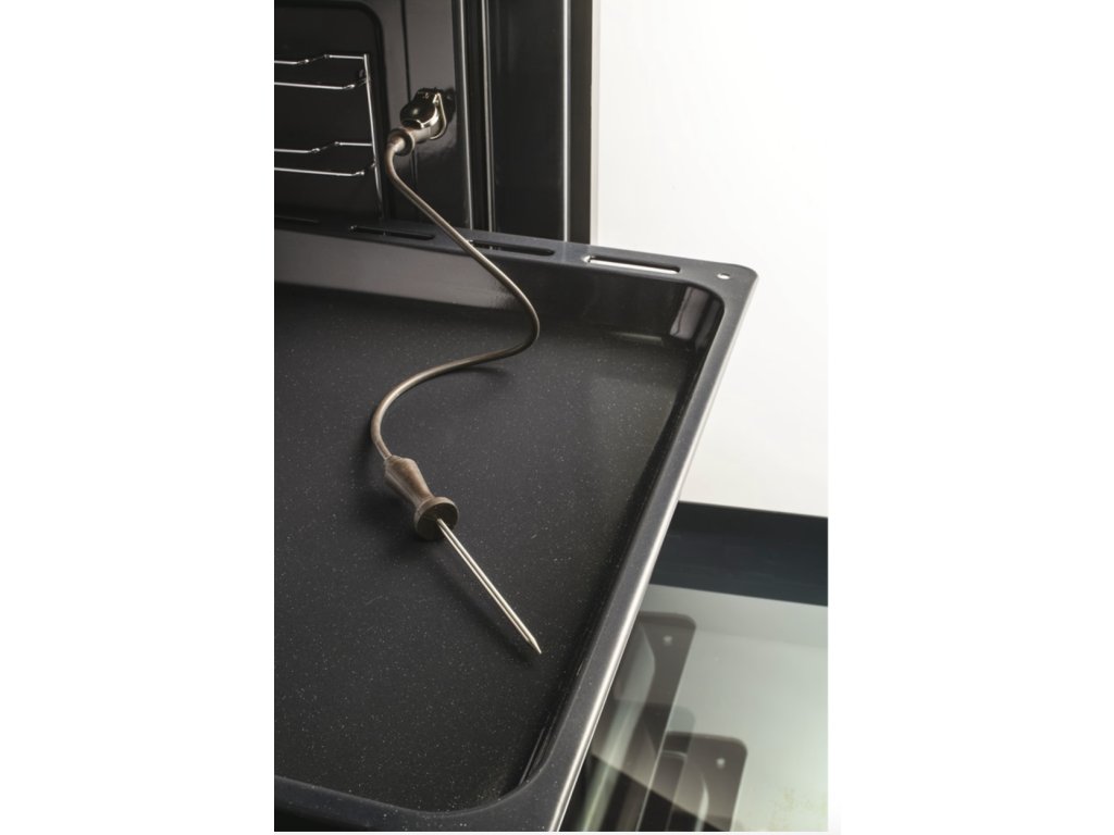 Trouba je vybavená teplotní sondou, která umožňuje měřit vnitřní teplotu masa a pomoci vám naprogramovat pečení přesně podle potřeby. Pro snadnější manipulaci je k dispozici teleskopický výsuv plechů, a Soft Close systém dvířek zajišťuje jejich tiché a plynulé zavření.