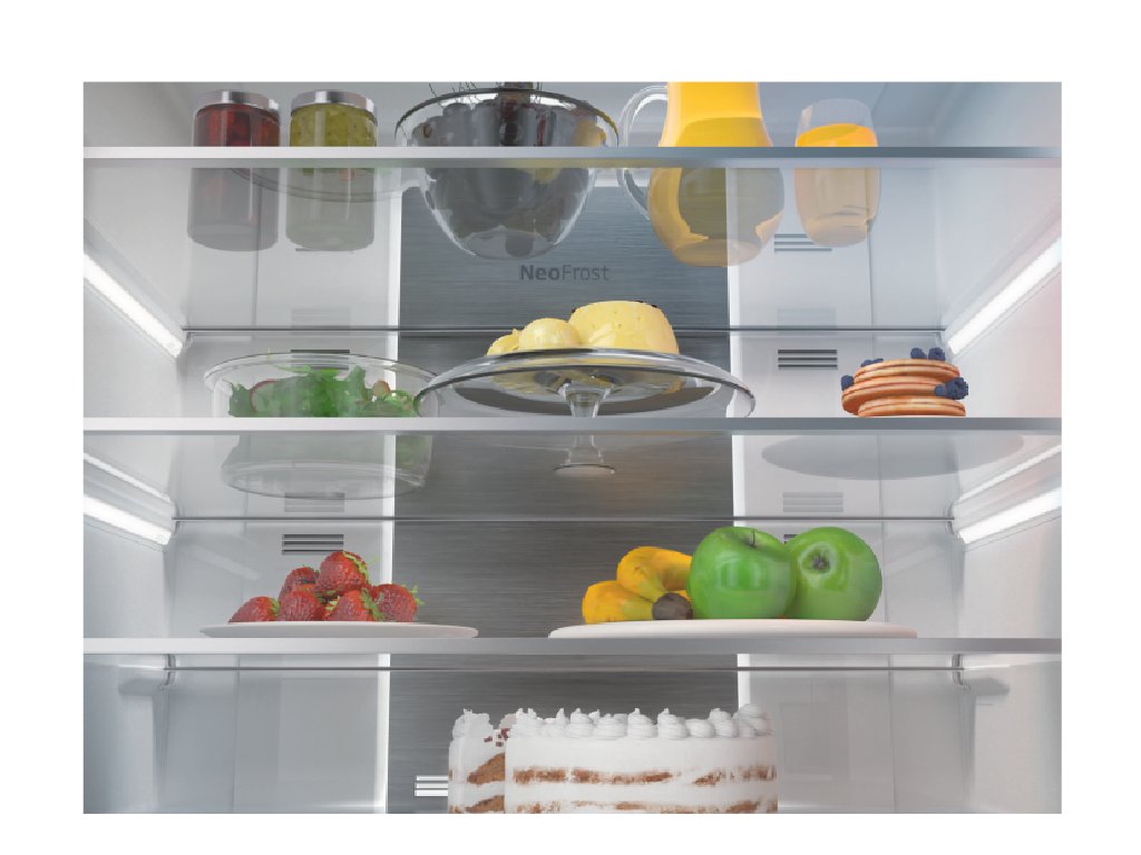 NeoFrost™ jsou oddělené chladící okruhy, které v mrazáku drží suchý studený vzduch a v chladničce zase ideální vlhkost. Nemíchá se tak vzduch mezi lednicí a mrazákem, tím pádem potraviny v lednici neosychají, nemíchají se pachy a vydrží déle čerstvé. Navíc mrazák není třeba odmrazovat a v lednici se na zadní stěně netvoří nepříjemné kapky.