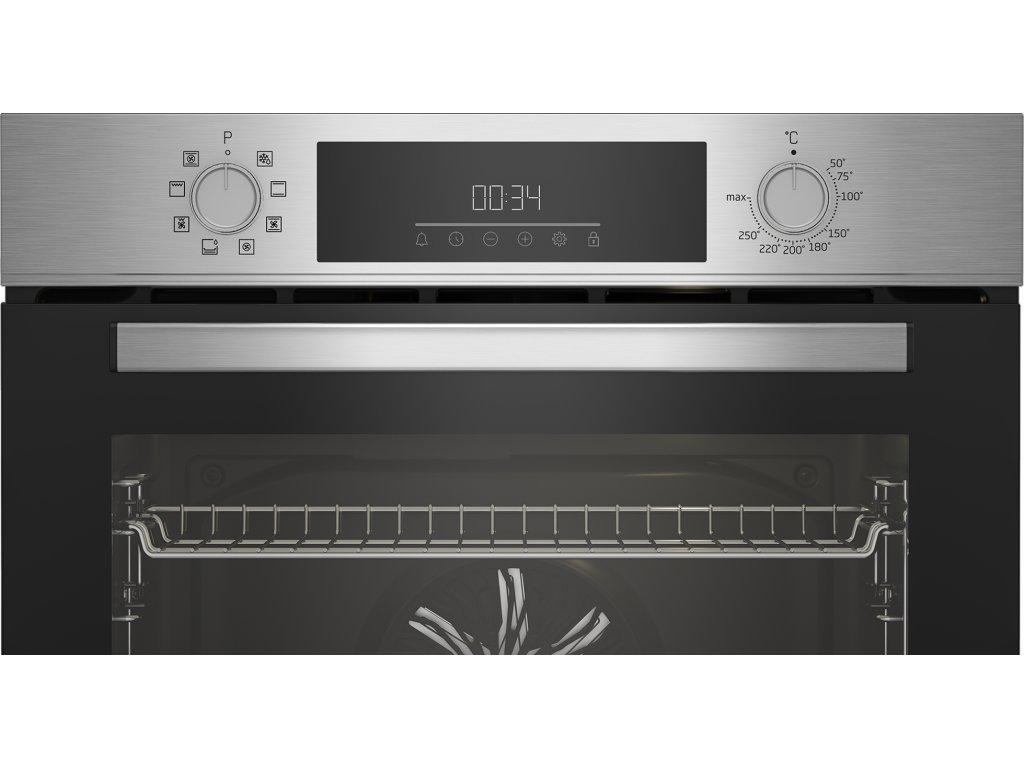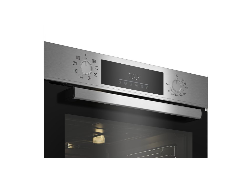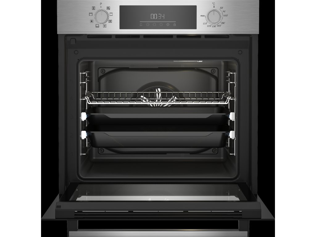 Beko BBIM12301X kombinuje elegantní design s výkonnými funkcemi – velký objem 72 l, technologie AeroPerfect™ pro rovnoměrné pečení, teleskopické výsuvy pro vyšší komfort a snadné čištění díky SteamShine®. Pokud hledáte troubu pro vestavbu, která bude spolehlivá, moderní a dobře konfigurovaná, je tento model velmi solidní volbou.