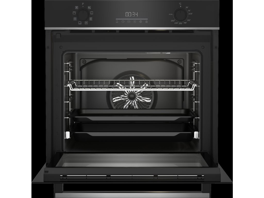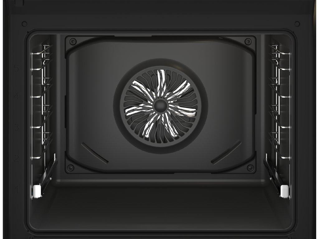 Program 3D pečení kombinuje horní a spodní ohřev se zadním ohřevem z kruhového topného tělesa a s ventilátorem. Teplo tak jde ze všech tří stran trouby, takže se jídlo propeče rychleji a rovnoměrně.