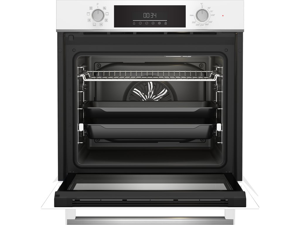 Program 3D pečení kombinuje horní a spodní ohřev se zadním ohřevem z kruhového topného tělesa a s ventilátorem. Teplo tak jde ze všech tří stran trouby, takže se jídlo propeče rychleji a rovnoměrně.