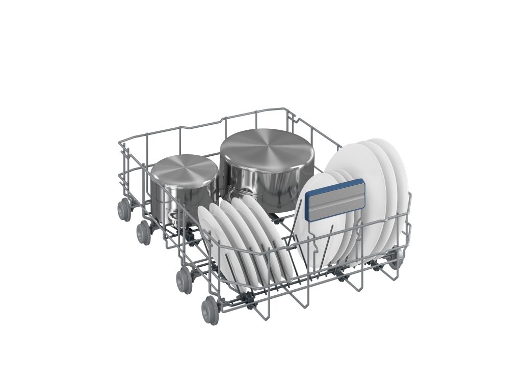 Příborová přihrádka poskytuje dostatek prostoru pro rozložení příborů a drobného nádobí a je vybavená vlastním sprchováním. Díky příhrádce se ve spodním koši uvolní další místo pro velké kusy nádobí.