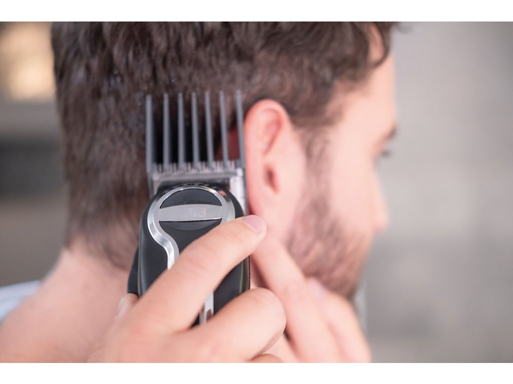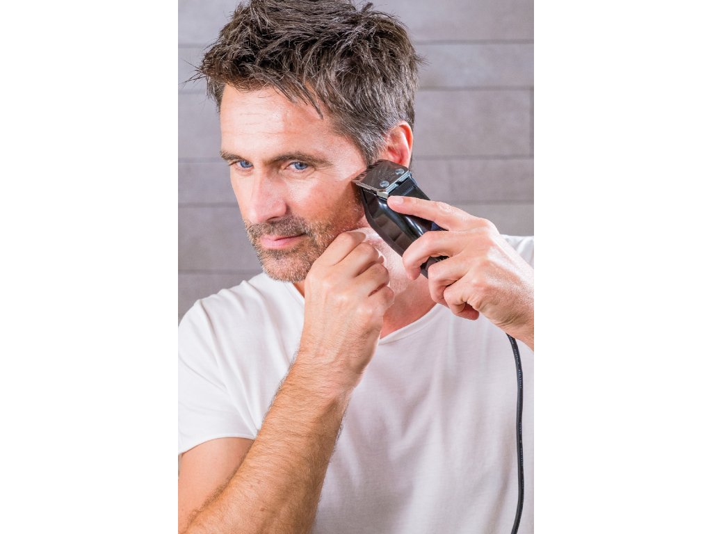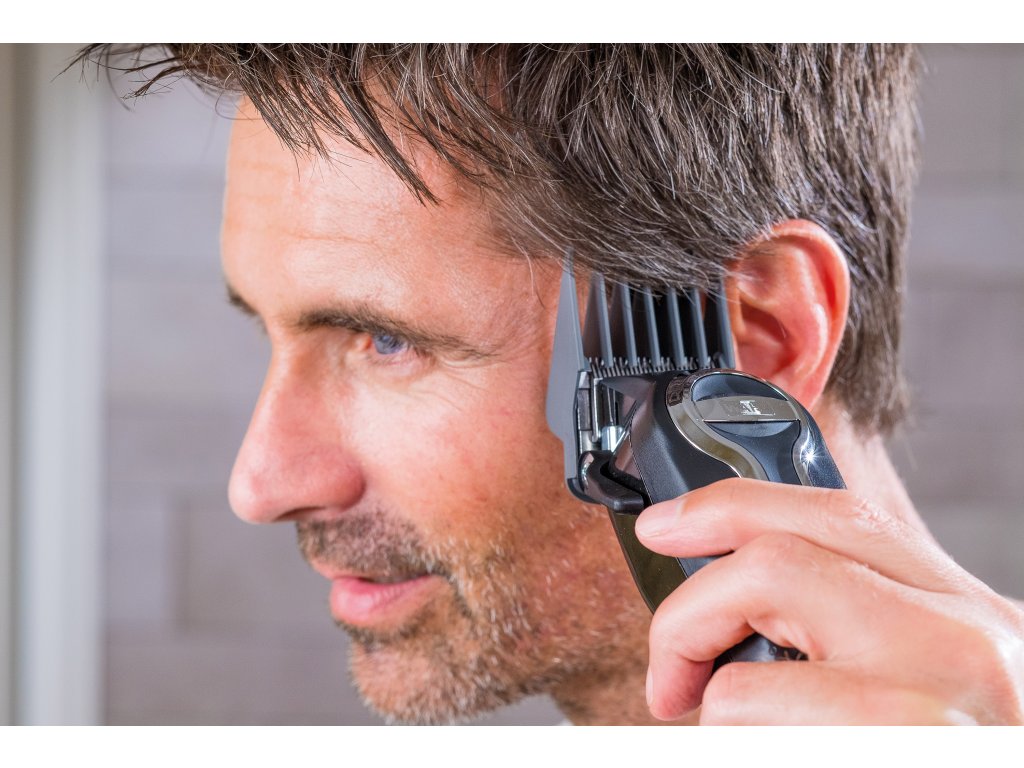 Díky integrované páčce lze snadno jedním prstem nastavit délku střihu od 1 do 3 mm. V kombinaci s 10 samostatnými hřebenovými nástavci je možné nastavit délku střihu od 1 do 25 mm. Prémiové nástavce SECURE-FIT® jsou vyrobeny z vysoce odolného materiálu a jsou mnohem odolnější než běžně dodávané nástavce. Výhodou nástavců SECURE-FIT® jsou klipsy z nerezové oceli, díky kterým lze nástavce na střihací hlavici velmi snadno a bezpečně nasadit nebo odejmout.